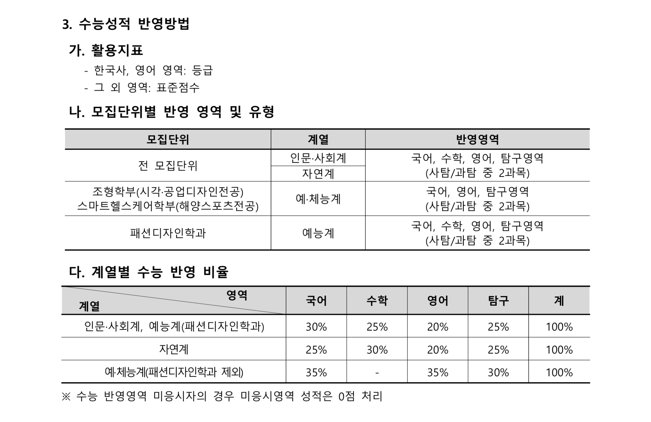 ※ 다군 편성: 사회계열, 과학컴퓨팅학과, 스마트헬스케어학부(휴먼바이오융합전공)모집군 확대 2022학년도 부경대학교 대학수학능력시험 반영방법