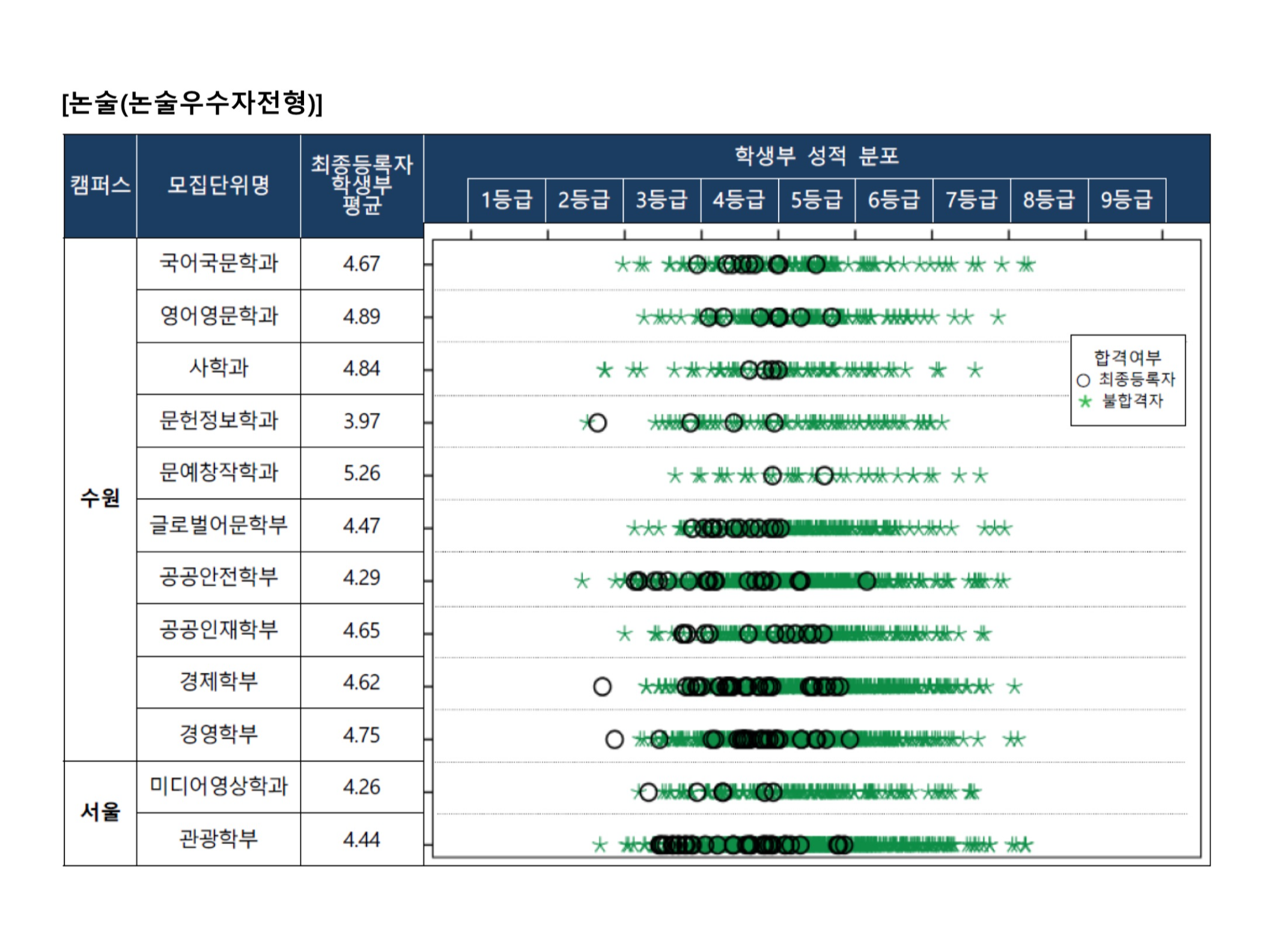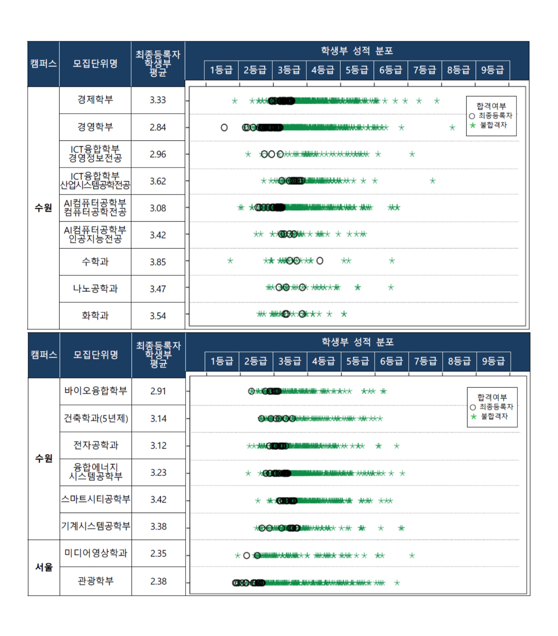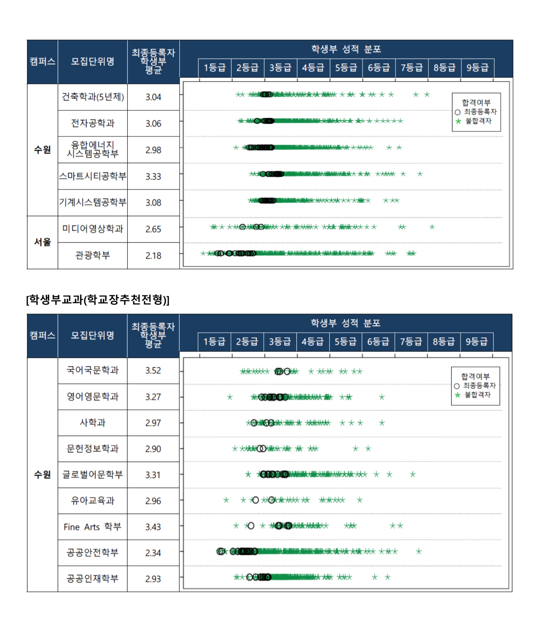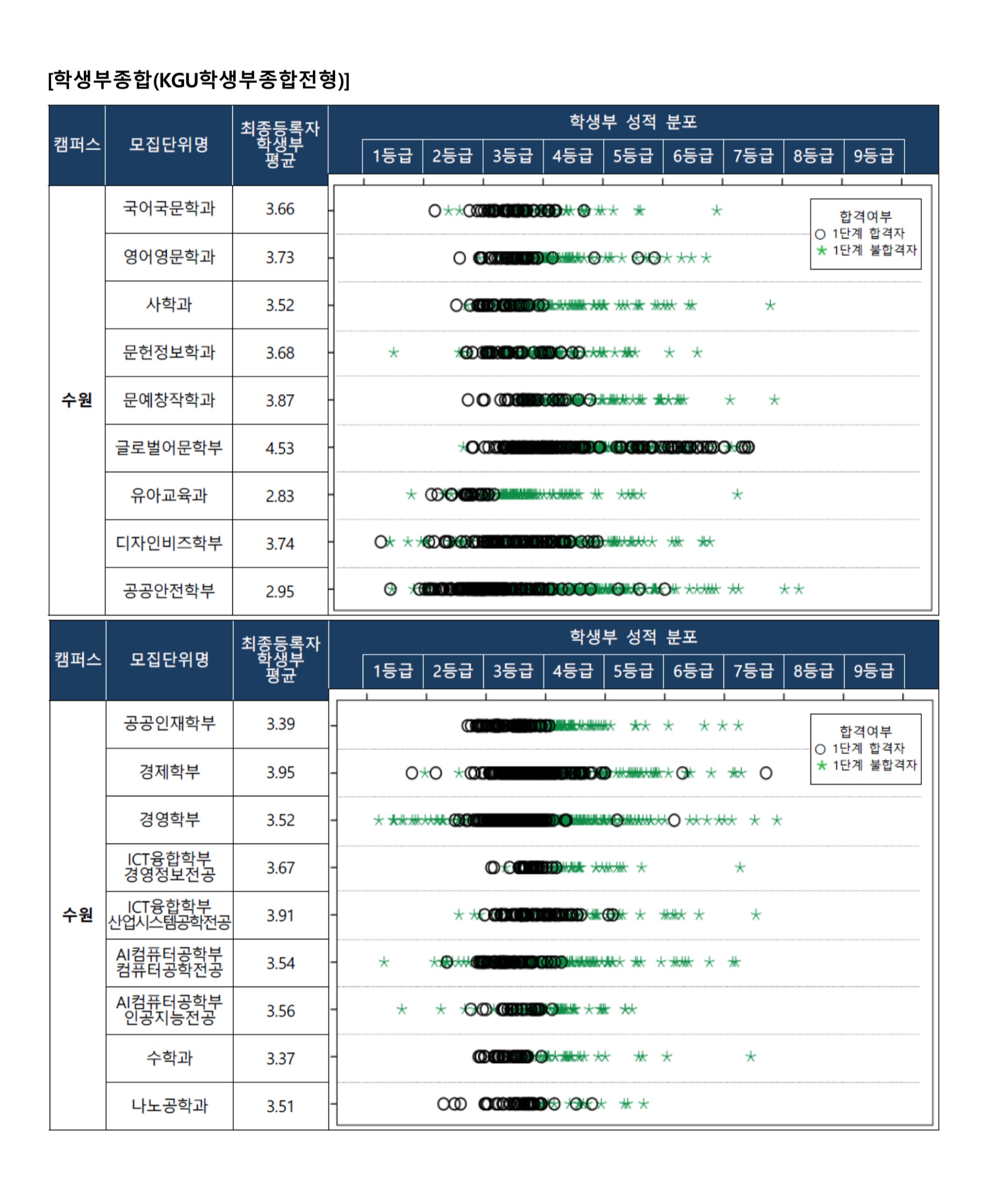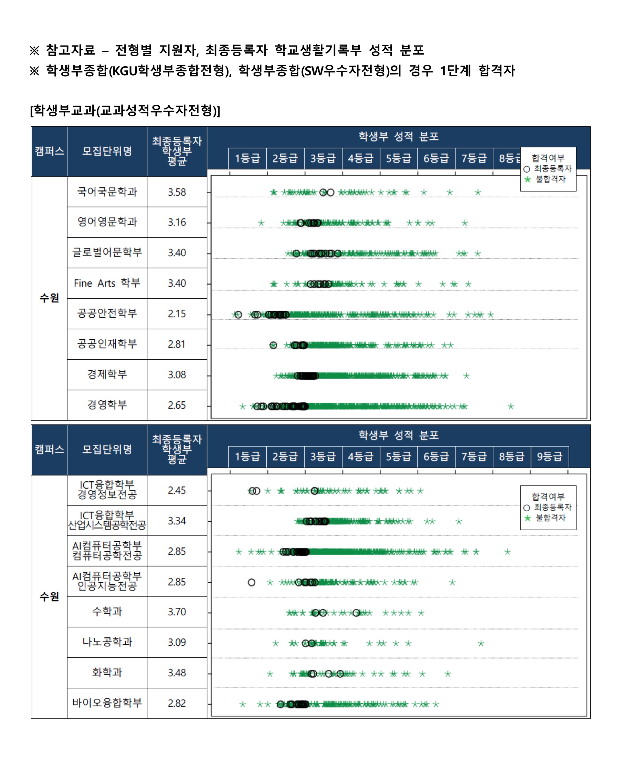 2022학년도 경기대학교 실기/실적전형 수시등급 2022학년도 경기대학교 학교생활기록부 성적 분포