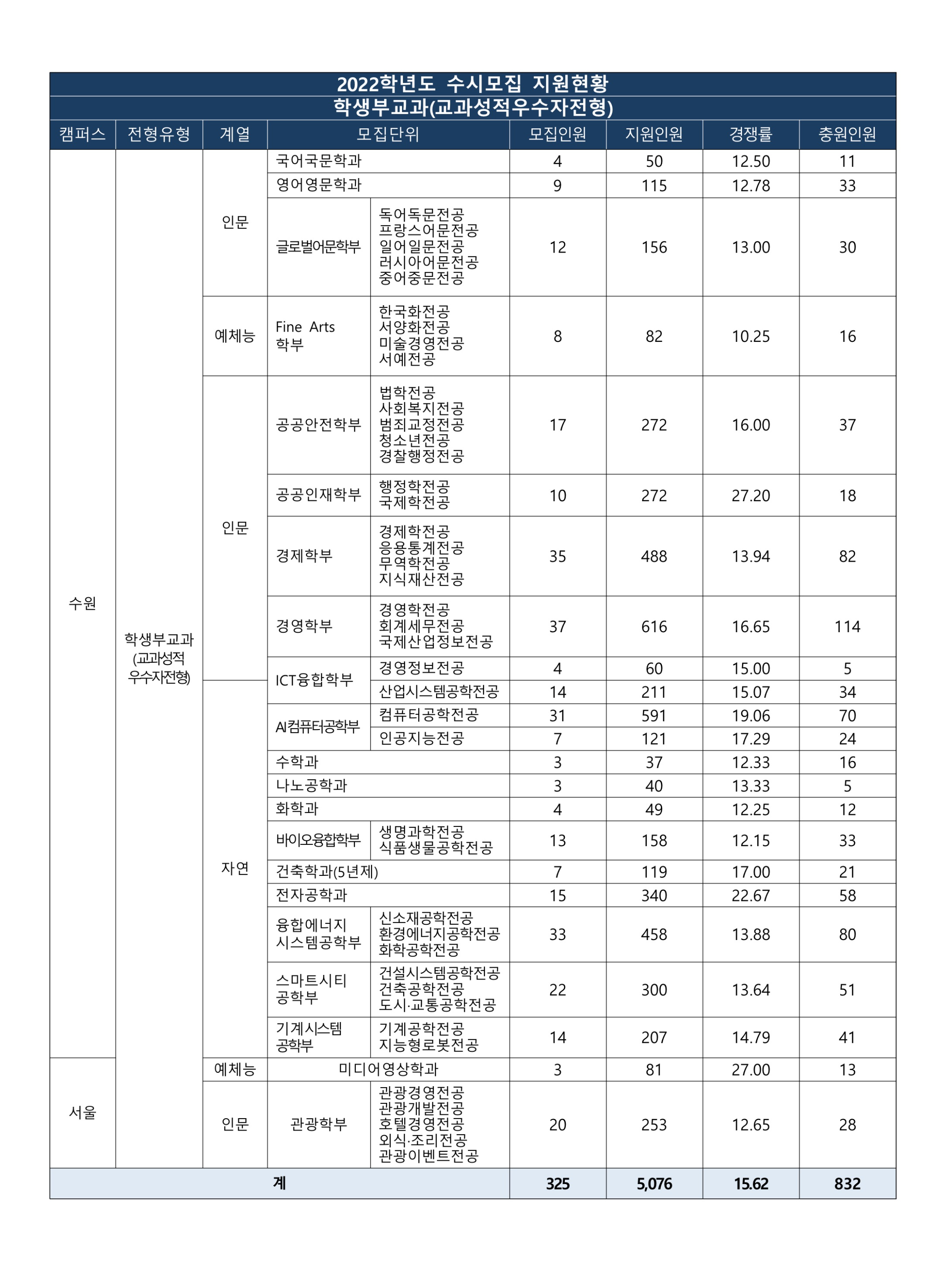 2022학년도 경기대학교 수시모집 지원현황 2022학년도 경기대학교 학생부교과전형 수시등급