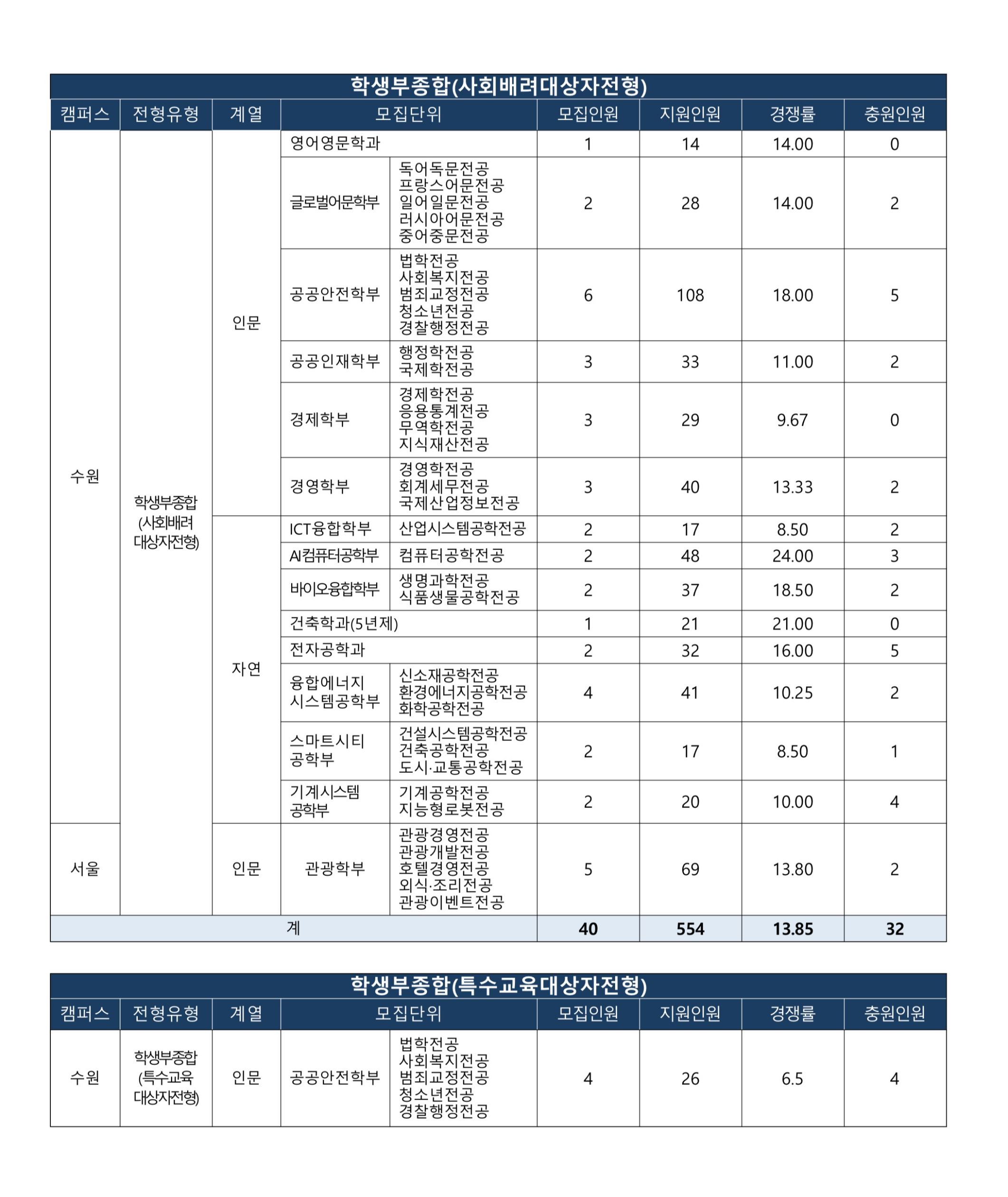 관광이벤트전공22 5.50 10 3.86 4.26 모집단위 학생부종합(사회배려대상자전형) 모집