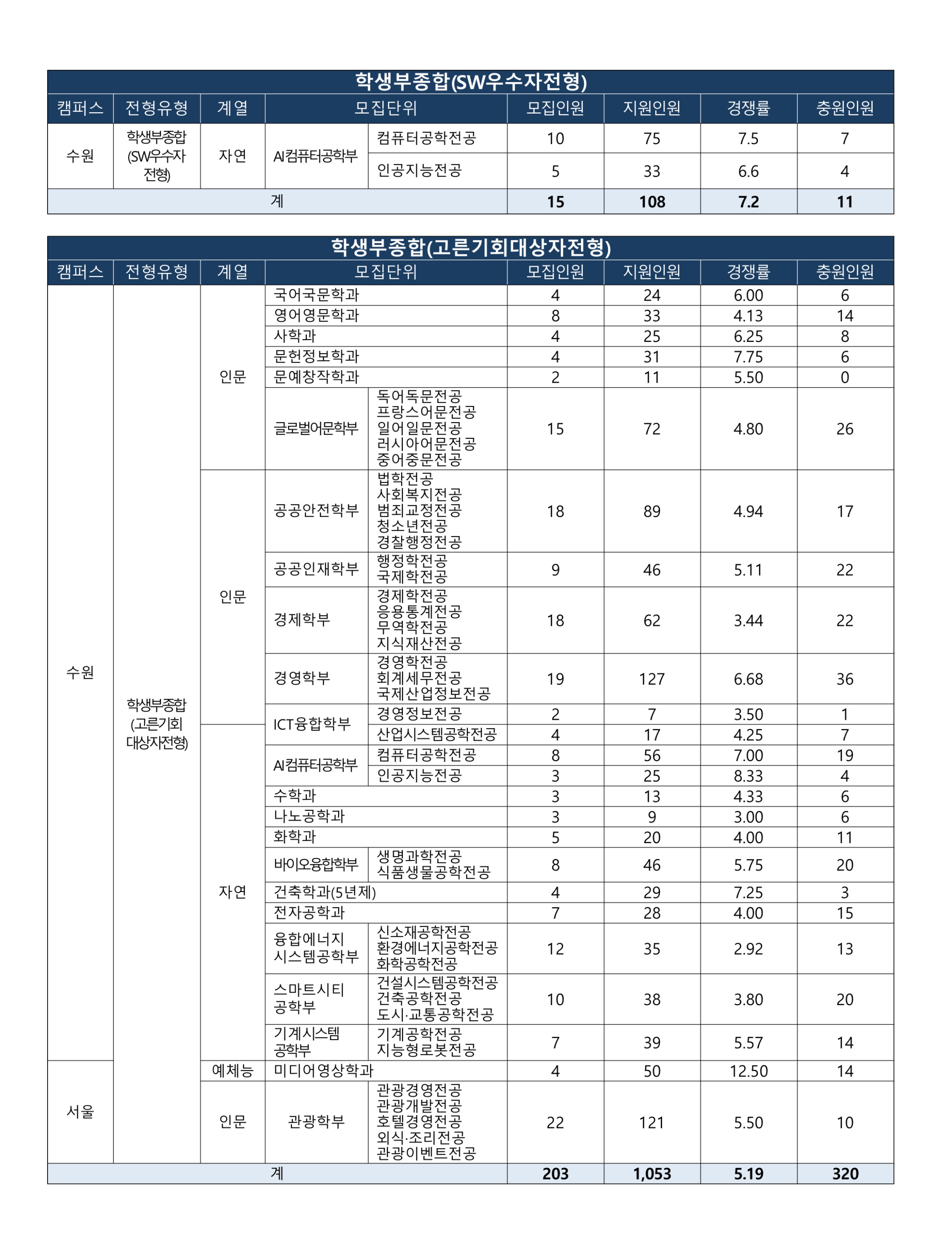 관광이벤트전공55 11.02 24 3.41 3.67 모집단위 학생부종합(SW우수자전형) 모집
