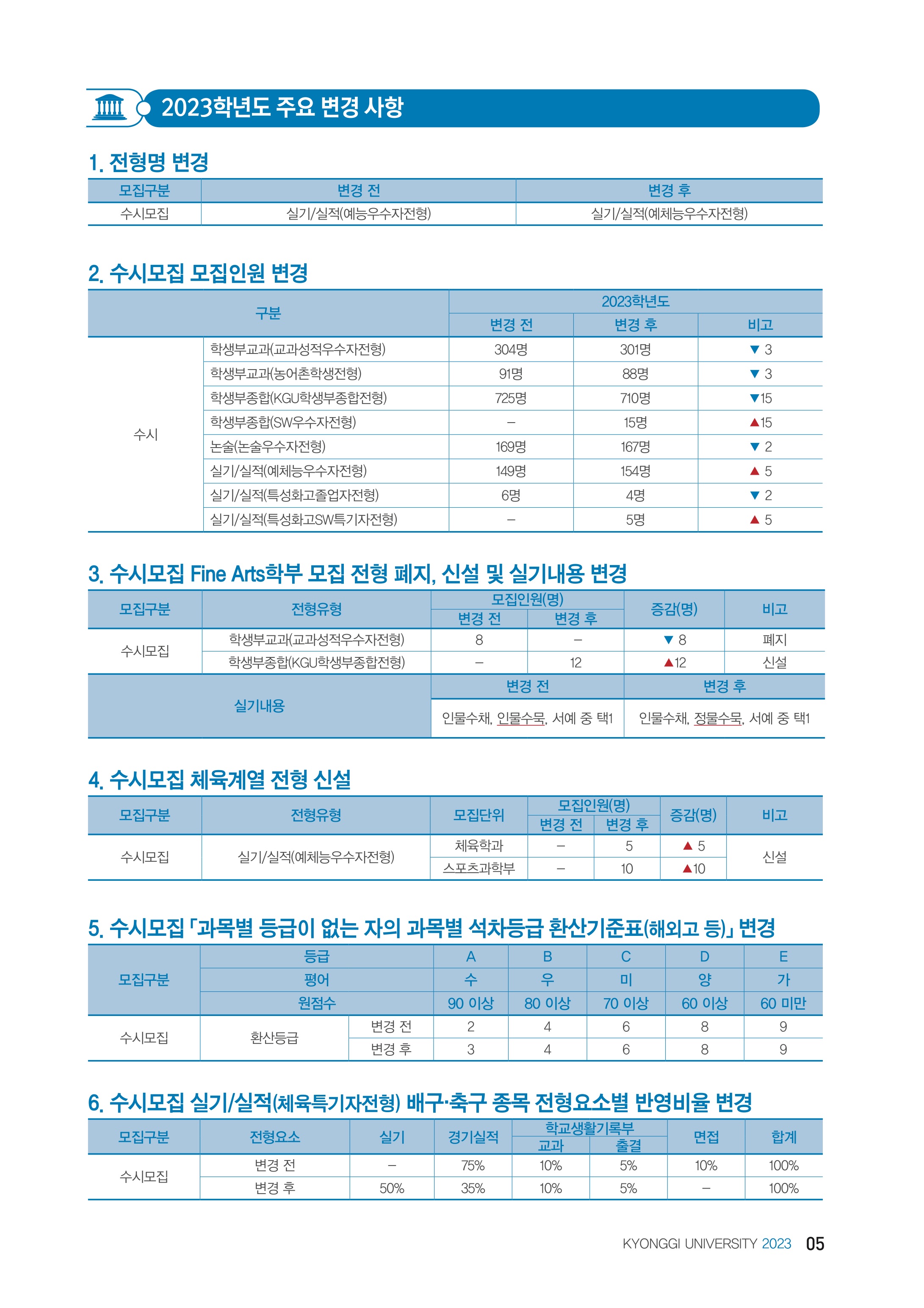 2023학년도 경기대학교 수시모집 요강.pdf19.94MB2023학년도 경기대학교 수시모집 전년 대비 변경사항