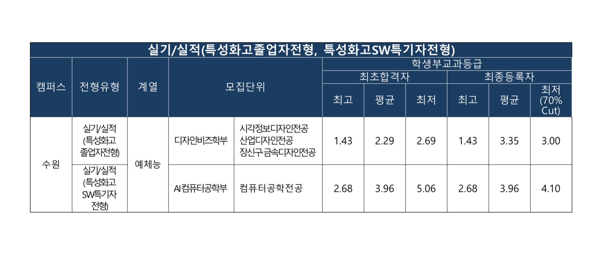 공학부컴퓨터공학전공 10 7.5 7 3.69 3.83 전 교과