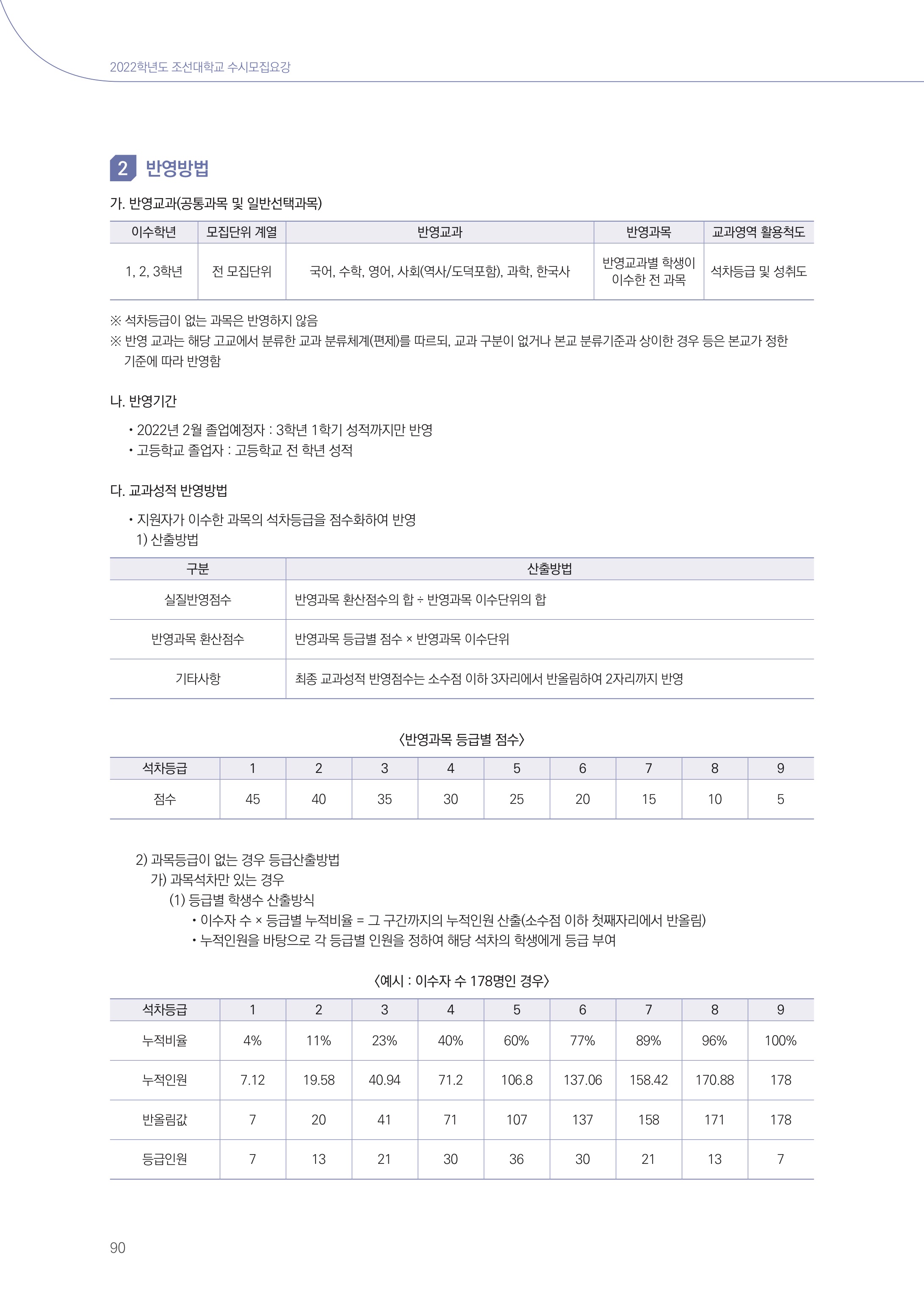 2023학년도 조선대학교 수시모집 전형 요약 2022학년도 조선대학교 학생부성적 산출방법