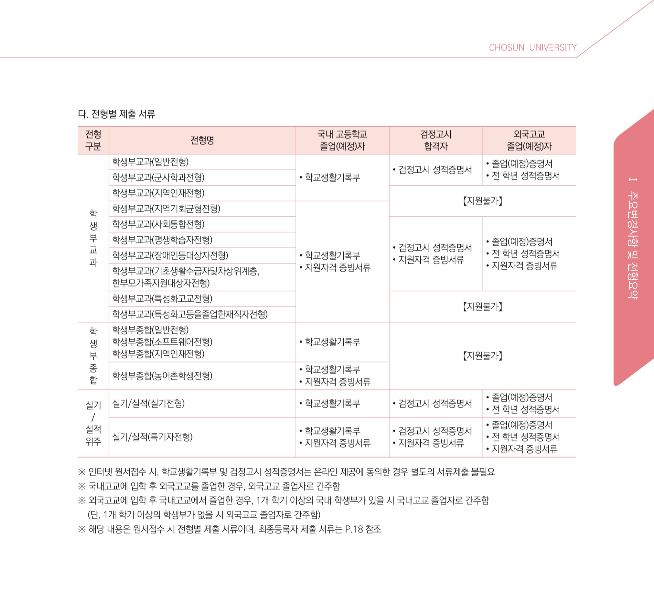 2023학년도 조선대학교 수시모집 요강.pdf3.99MB2023학년도 조선대학교 수시모집 전년 대비 변경사항