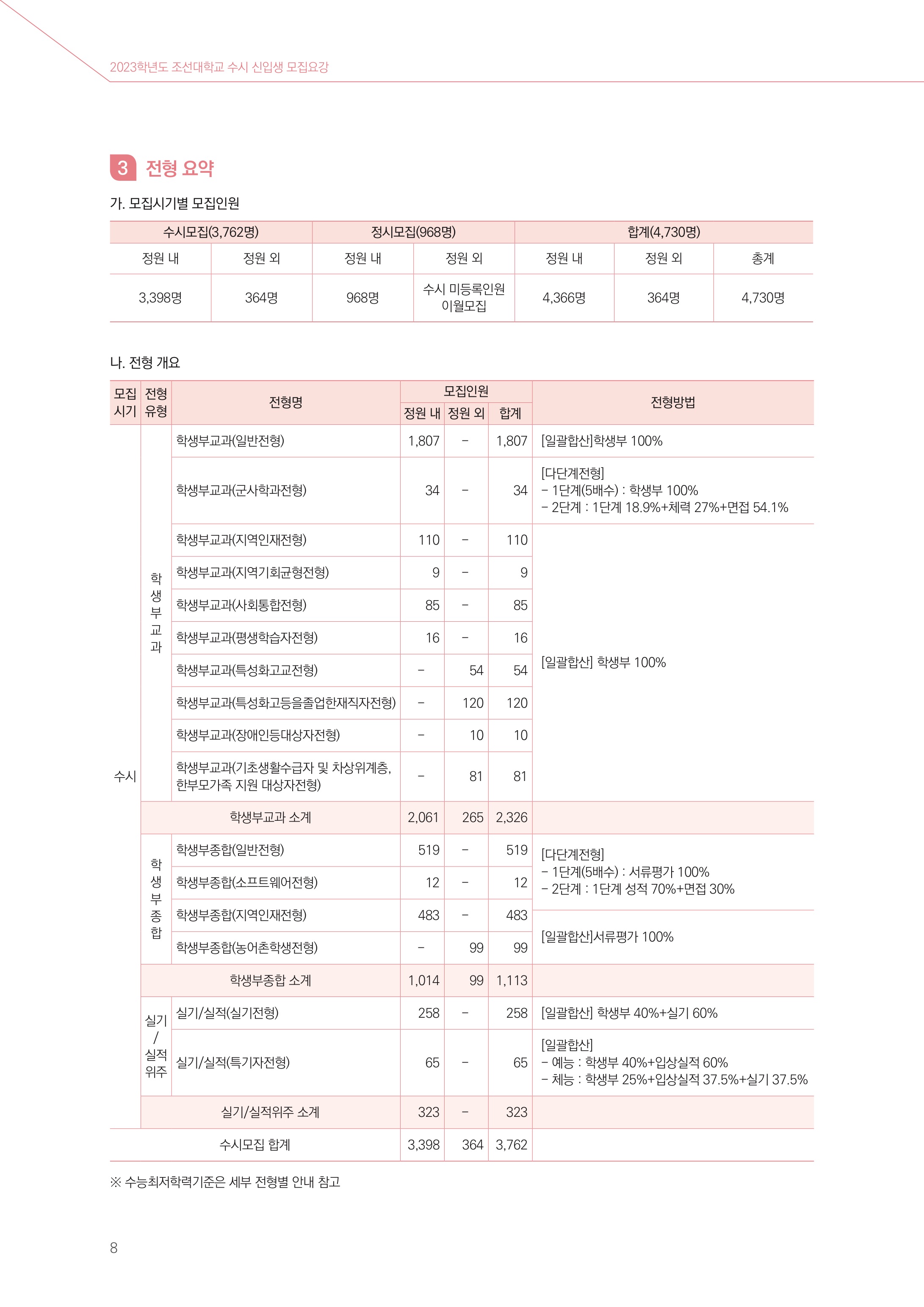 2023학년도 조선대학교 수시모집 전형 요약