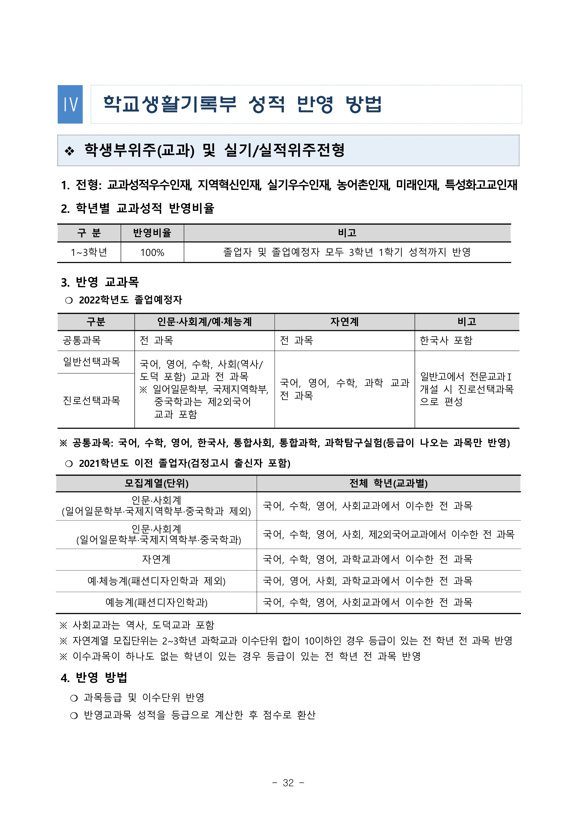 2022학년도 부경대학교 학교생활기록부 성적 반영 방법