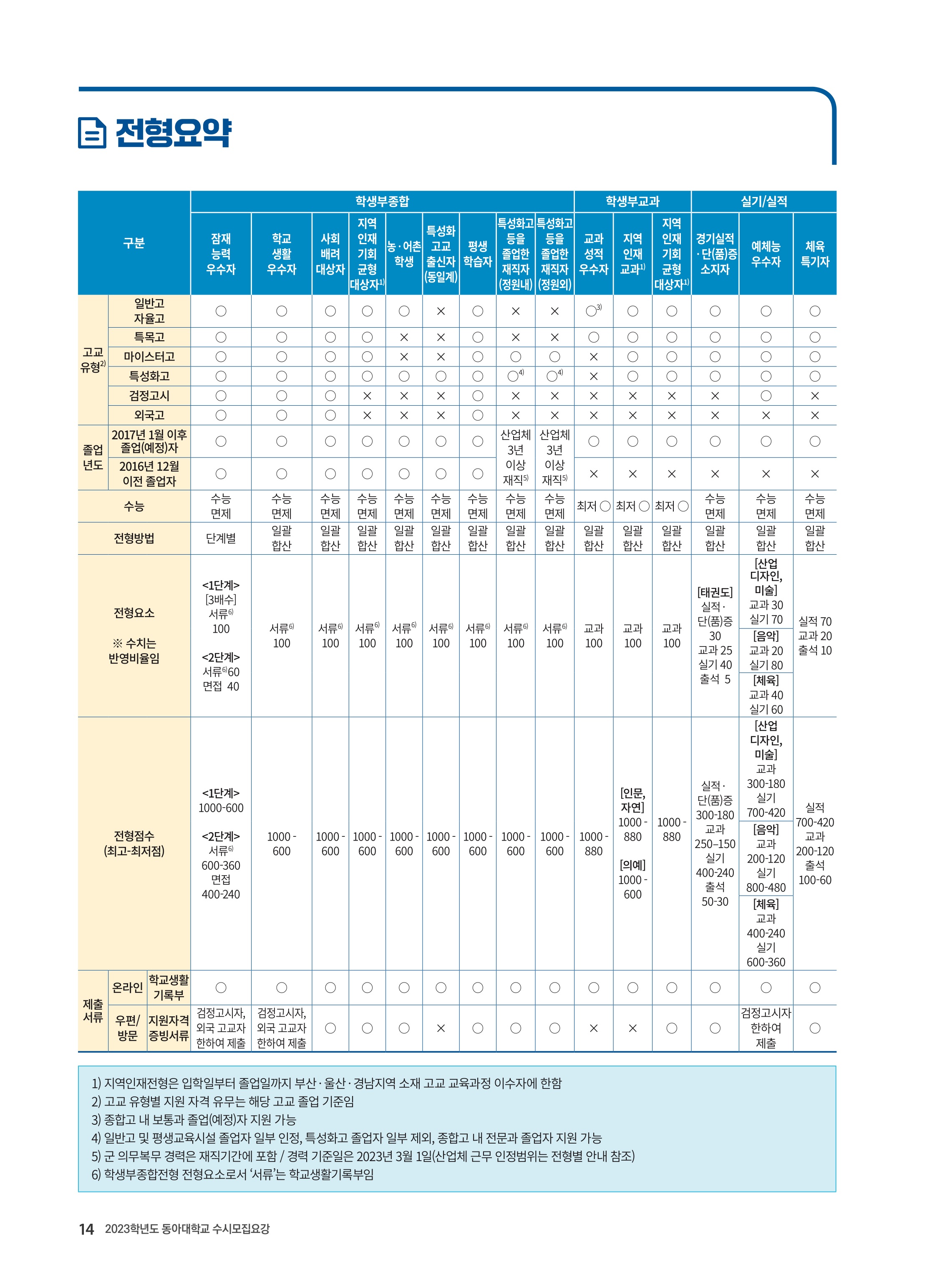 2023학년도 동아대학교 수시모집 요강.pdf15.28MB2023학년도 동아대학교 수시모집 전형요약
