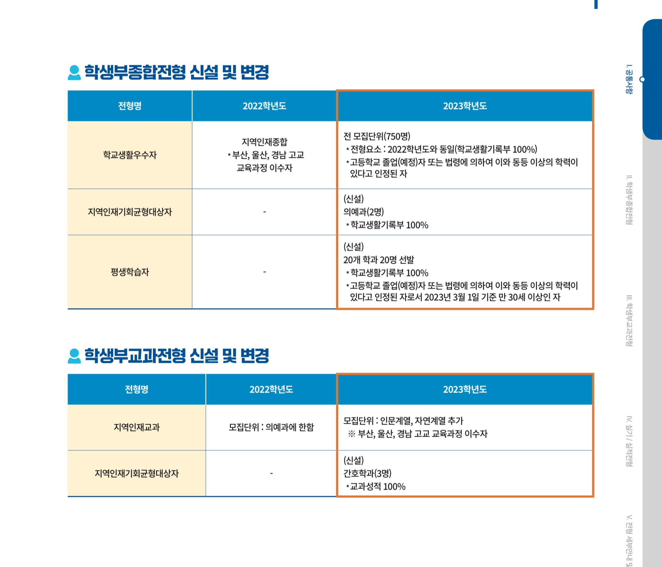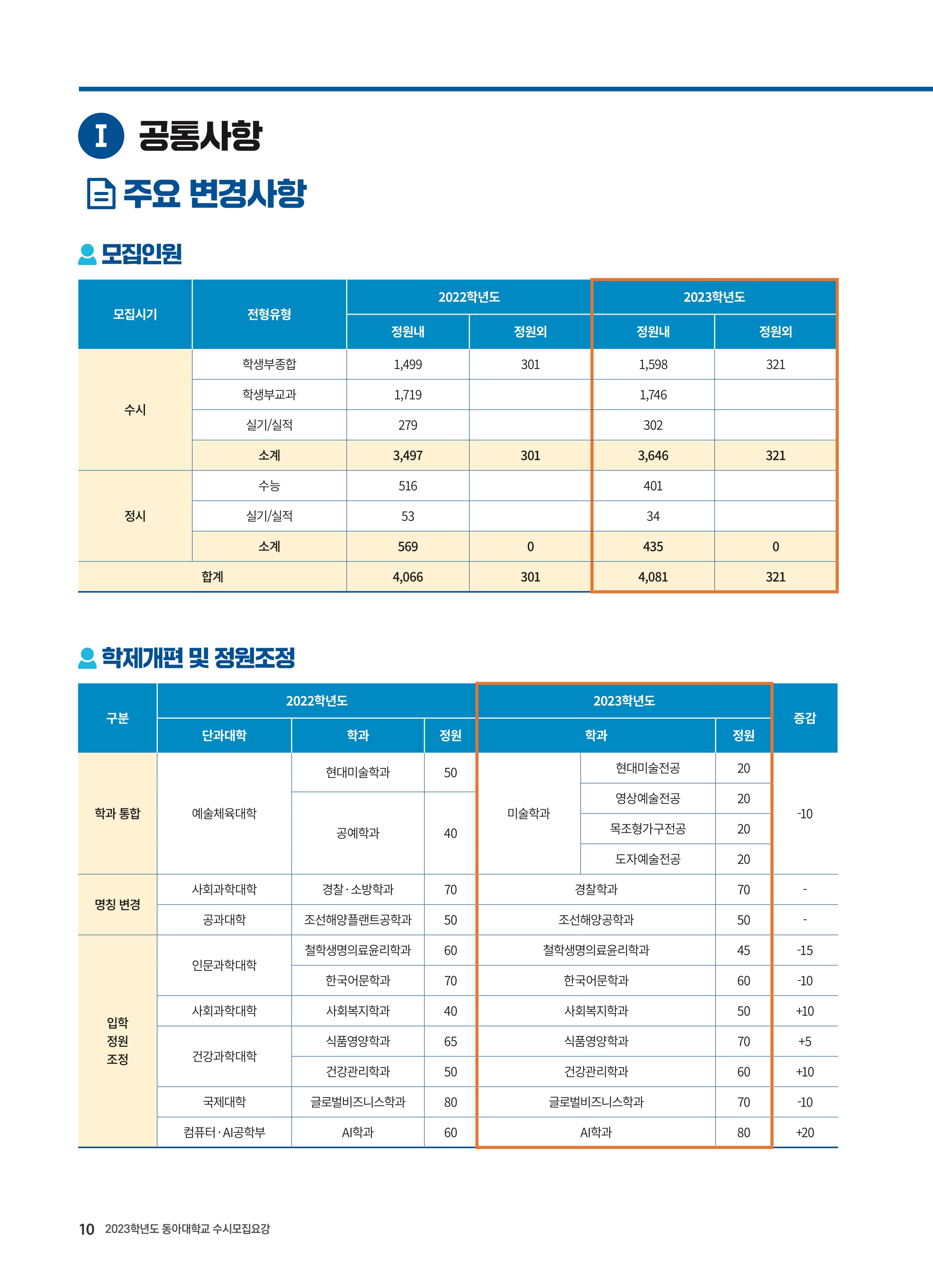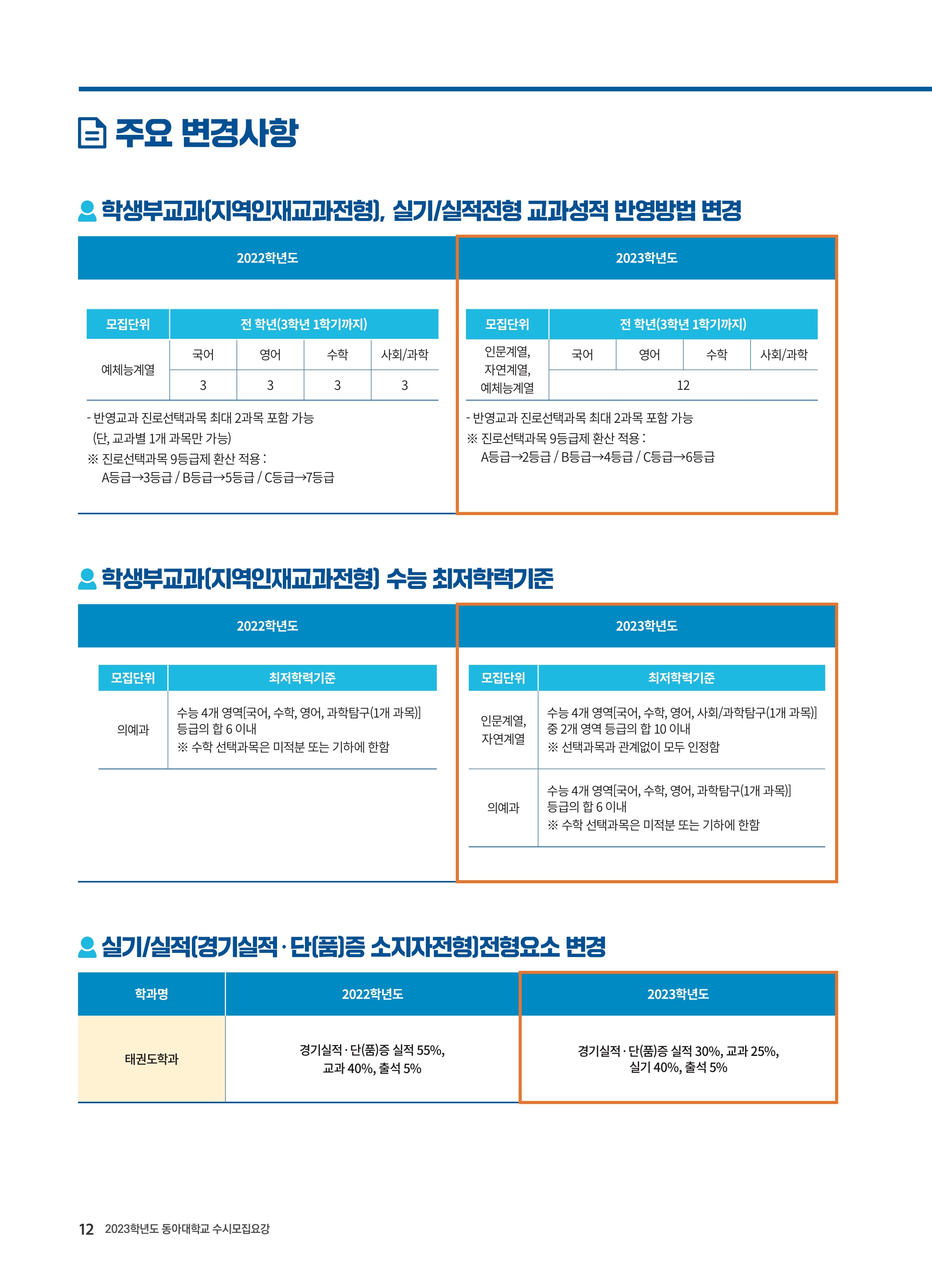 2023학년도 동아대학교 수시모집 전형요약 2023학년도 동아대학교 수시모집 전년 대비 변경사항