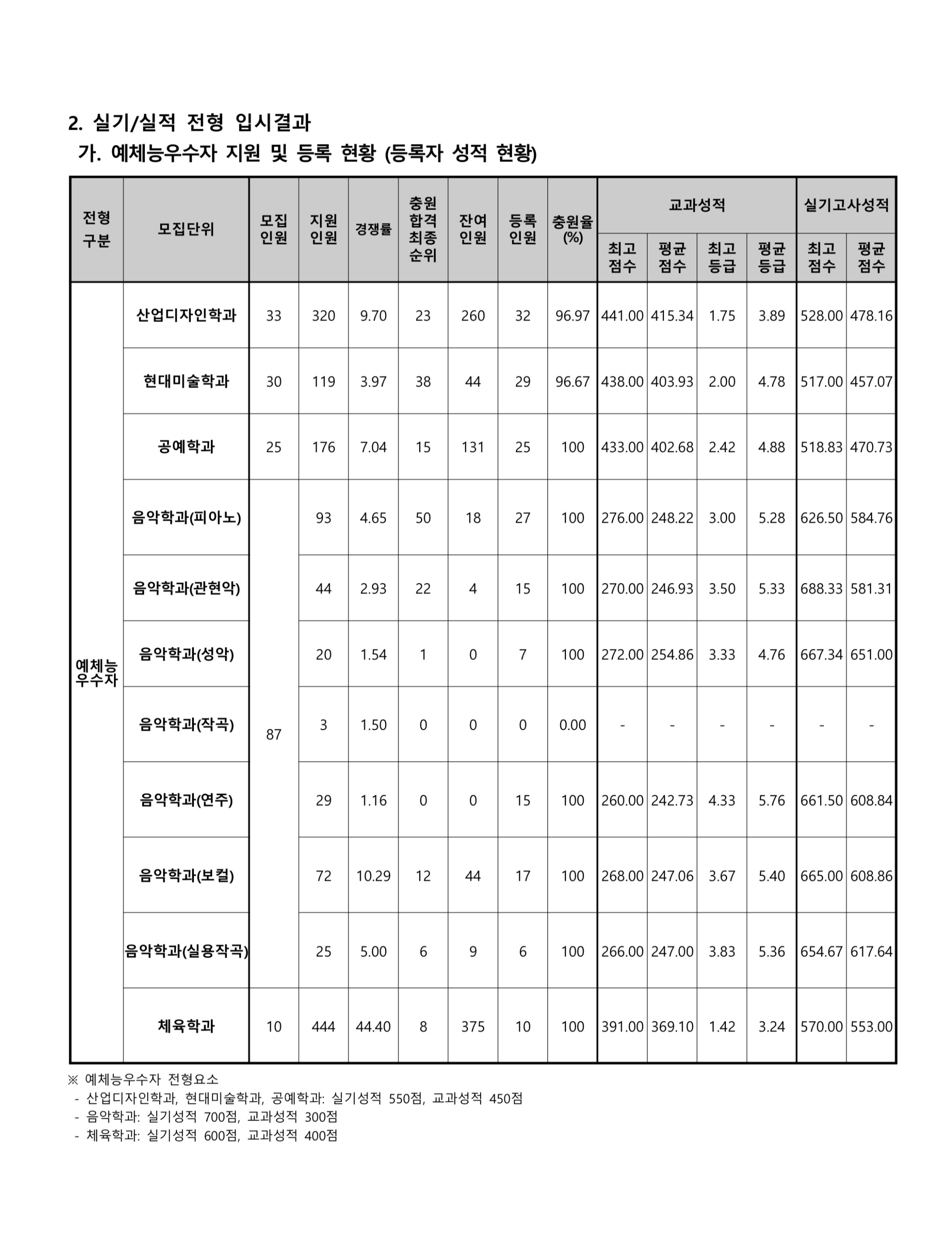 2022학년도 동아대학교 실기/실적전형 수시등급