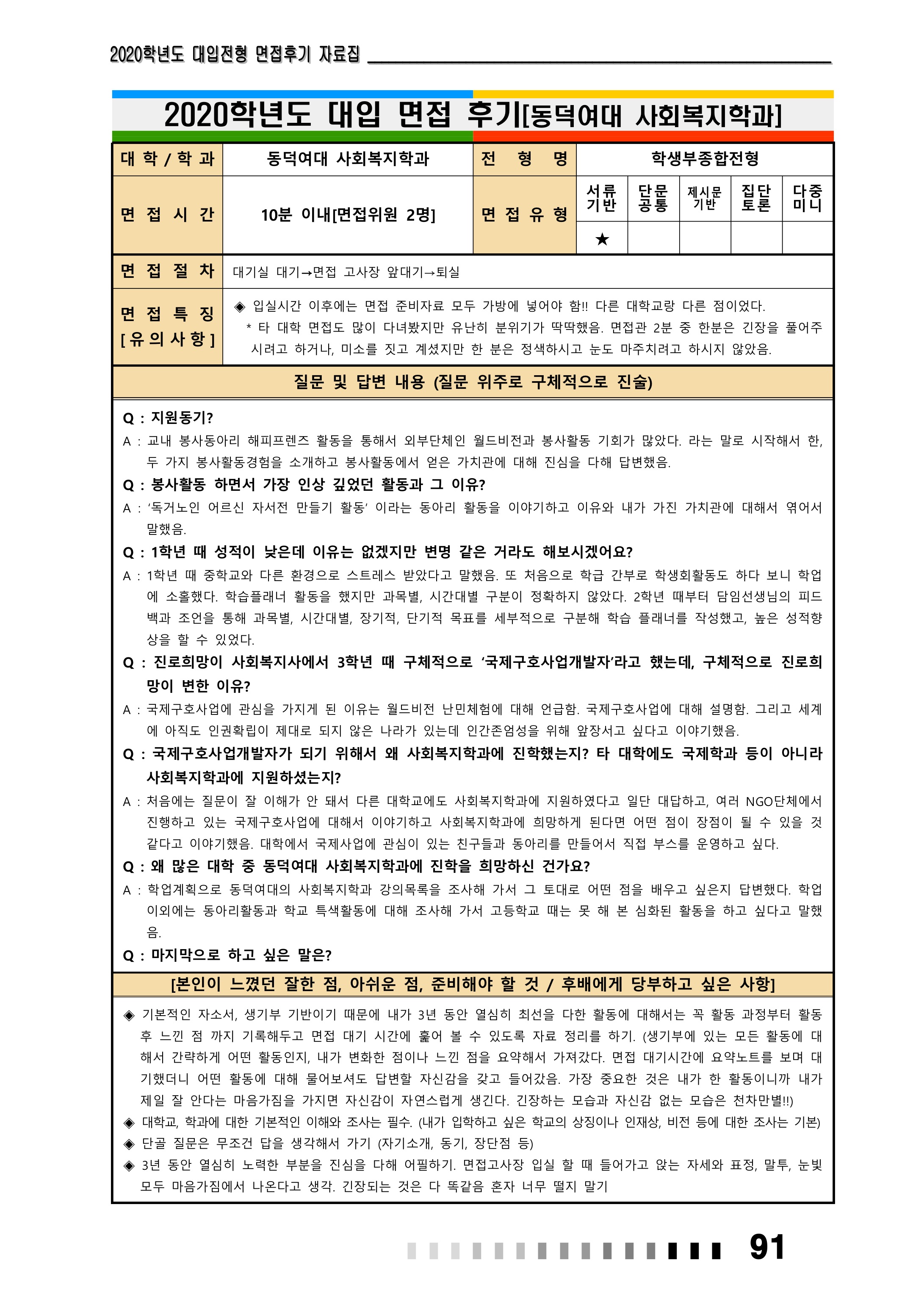 2021학년도 동덕여자대학교 면접 후기2 - 문헌정보학과 2021학년도 동덕여자대학교 면접 후기3 - 사회복지학과