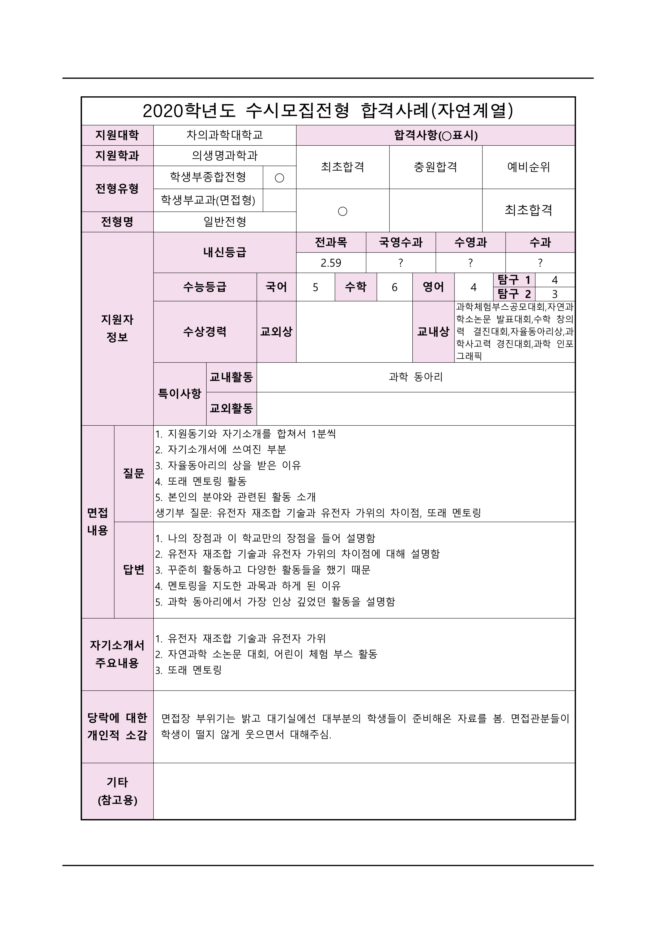 2021학년도 차의과학대학교 면접 질문입시 정보/면접 2023. 2. 13. 16:34