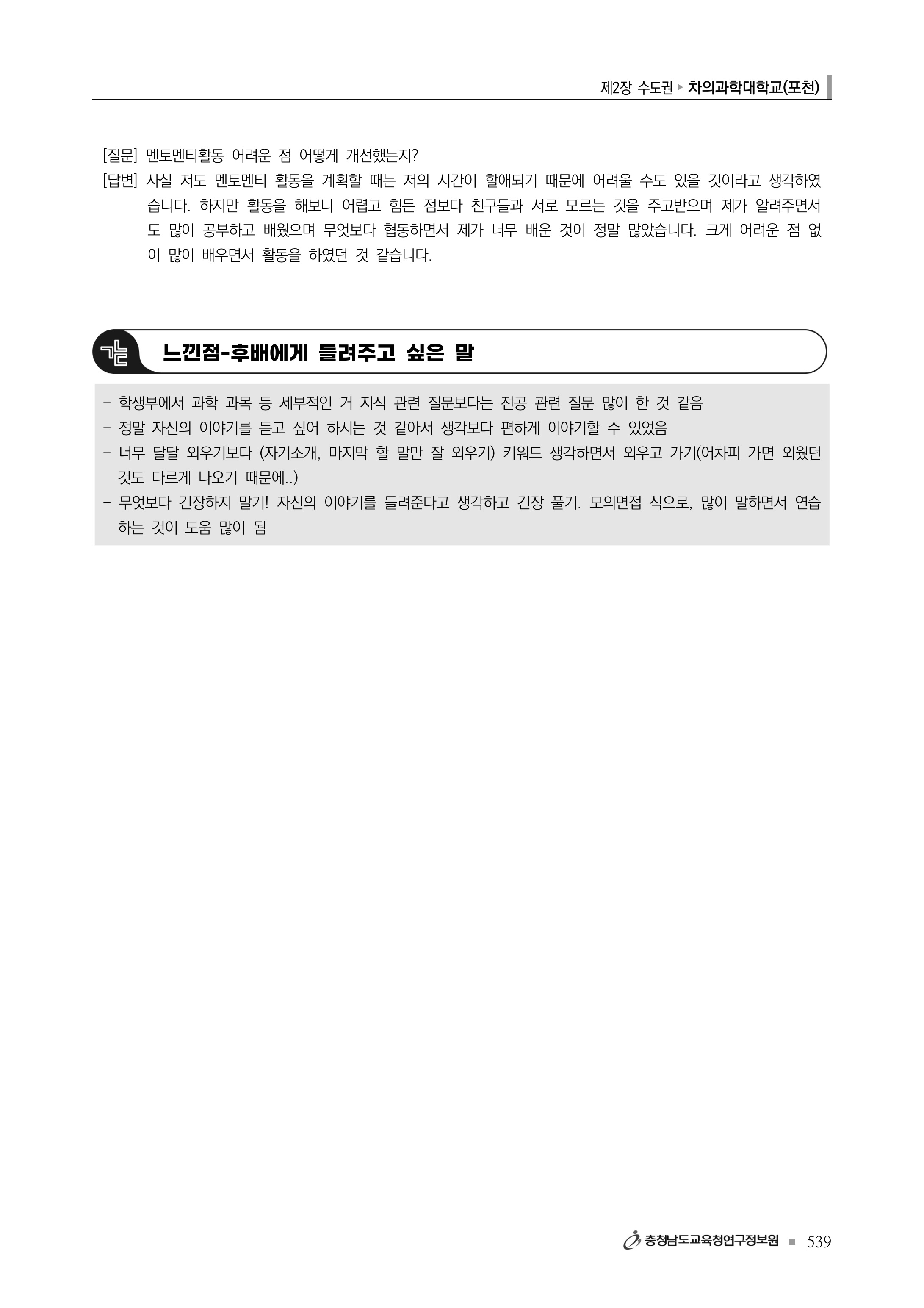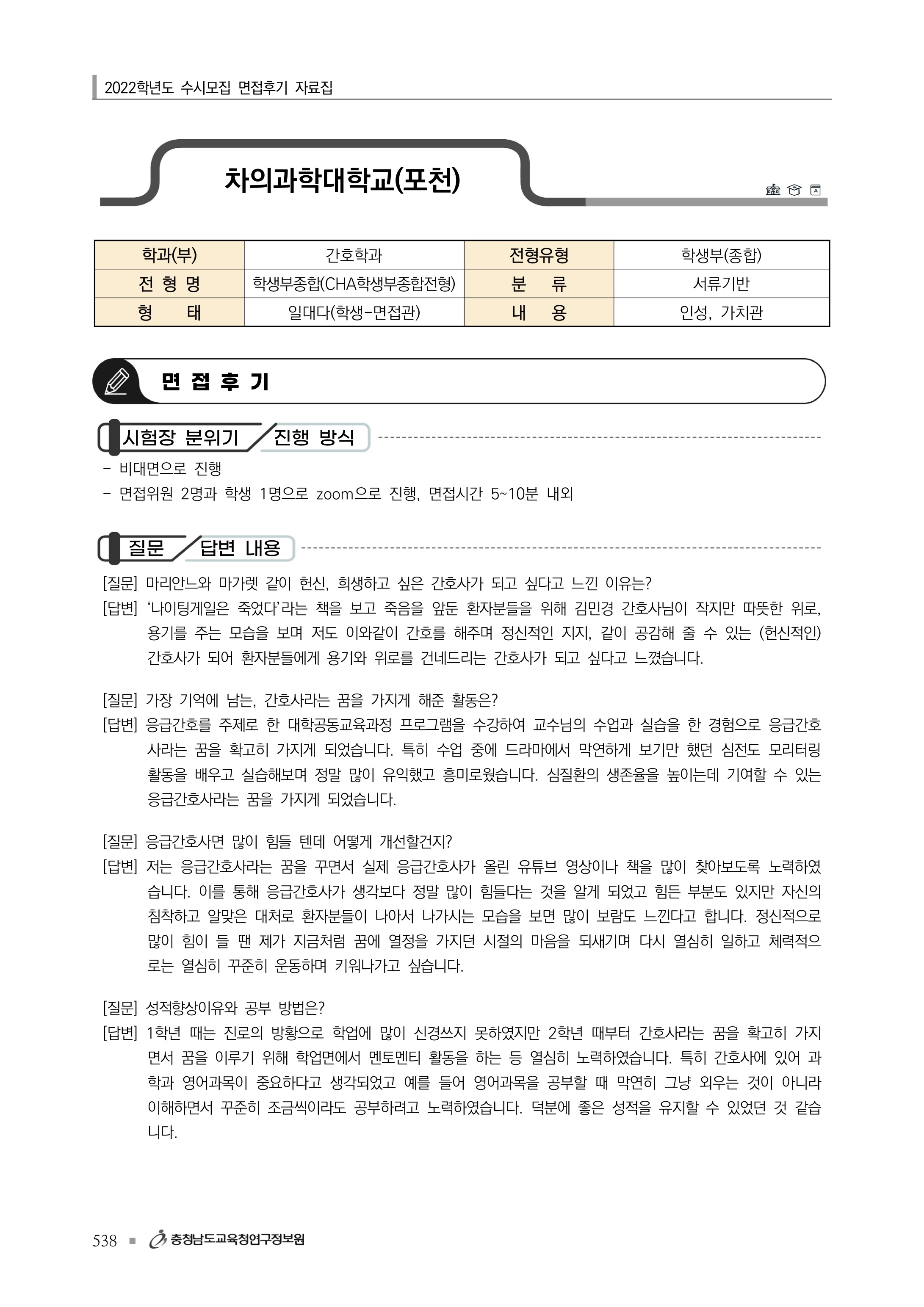 2023학년도 차의과학대학교 학생부교과 면접고사 가이드 문항 차의과학대학교 간호학과