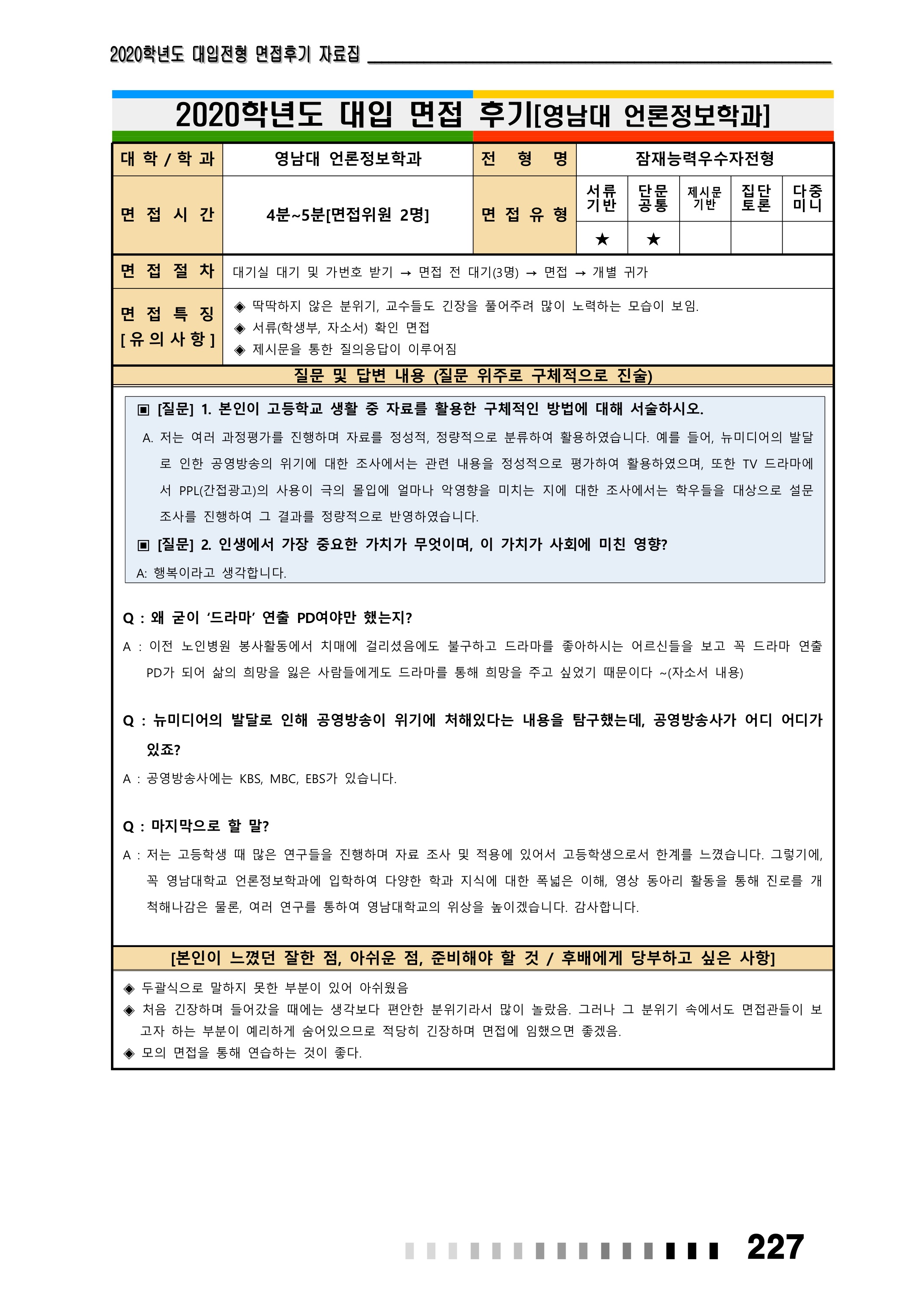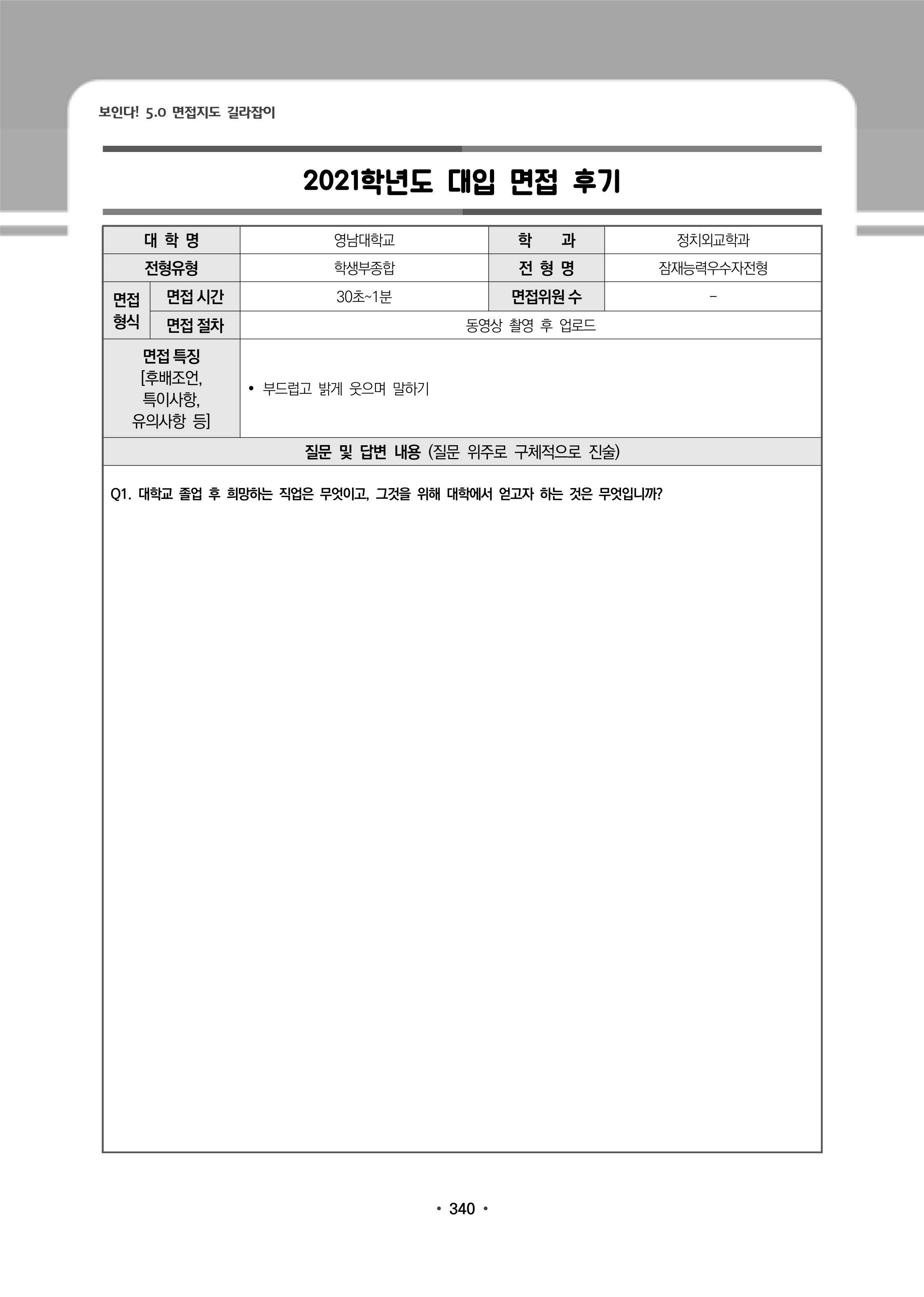 2021학년도 영남대학교 면접 후기23 - 심리학과 2021학년도 영남대학교 면접 후기24 - 언론정보학과