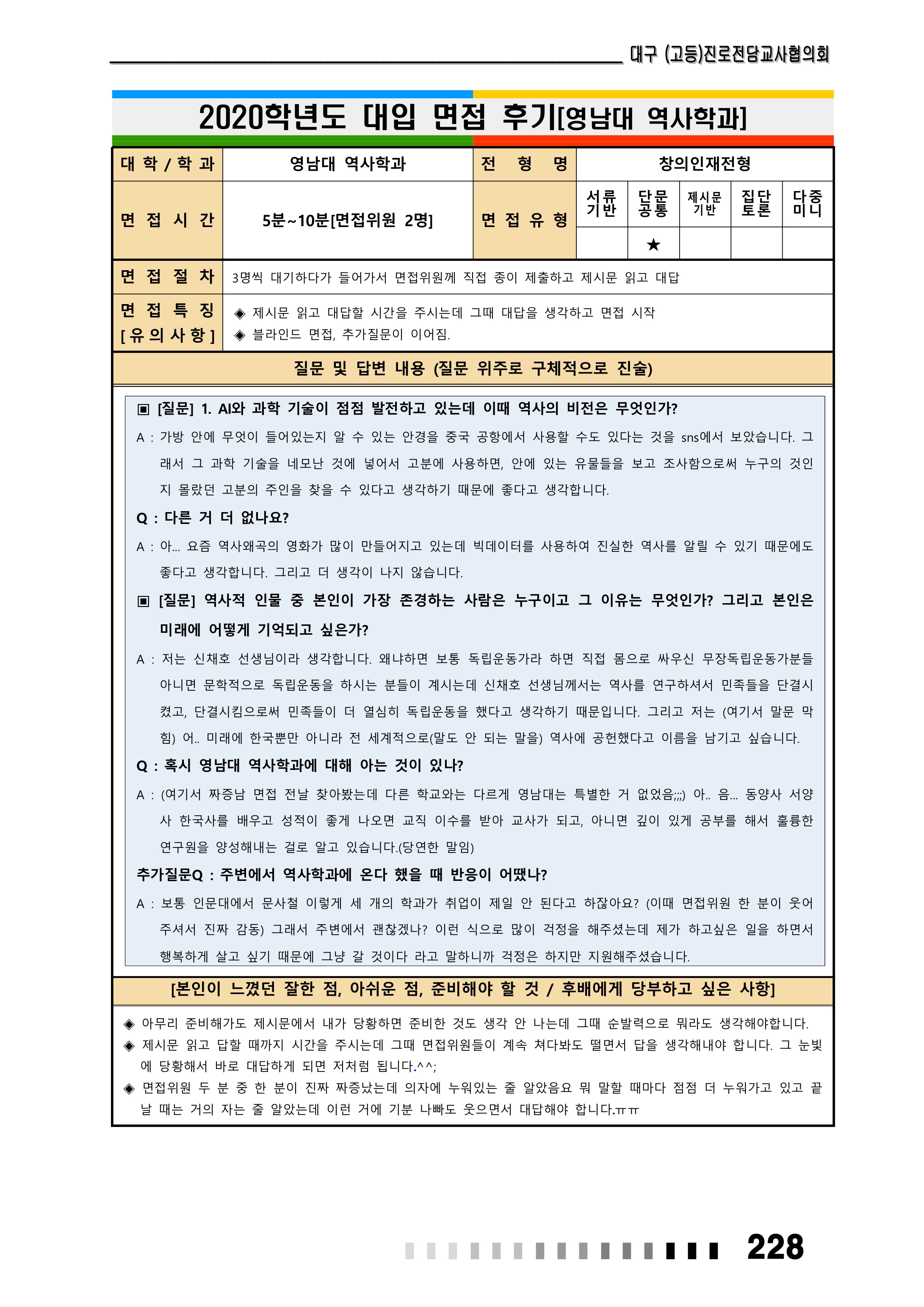 2021학년도 영남대학교 면접 후기25 - 역사학과 2021학년도 영남대학교 면접 후기26 - 영어교육과