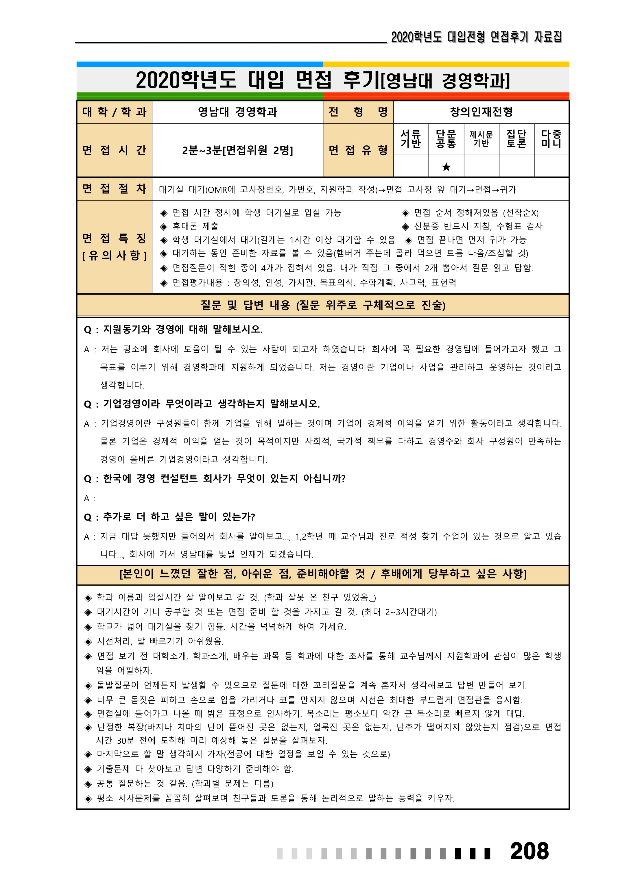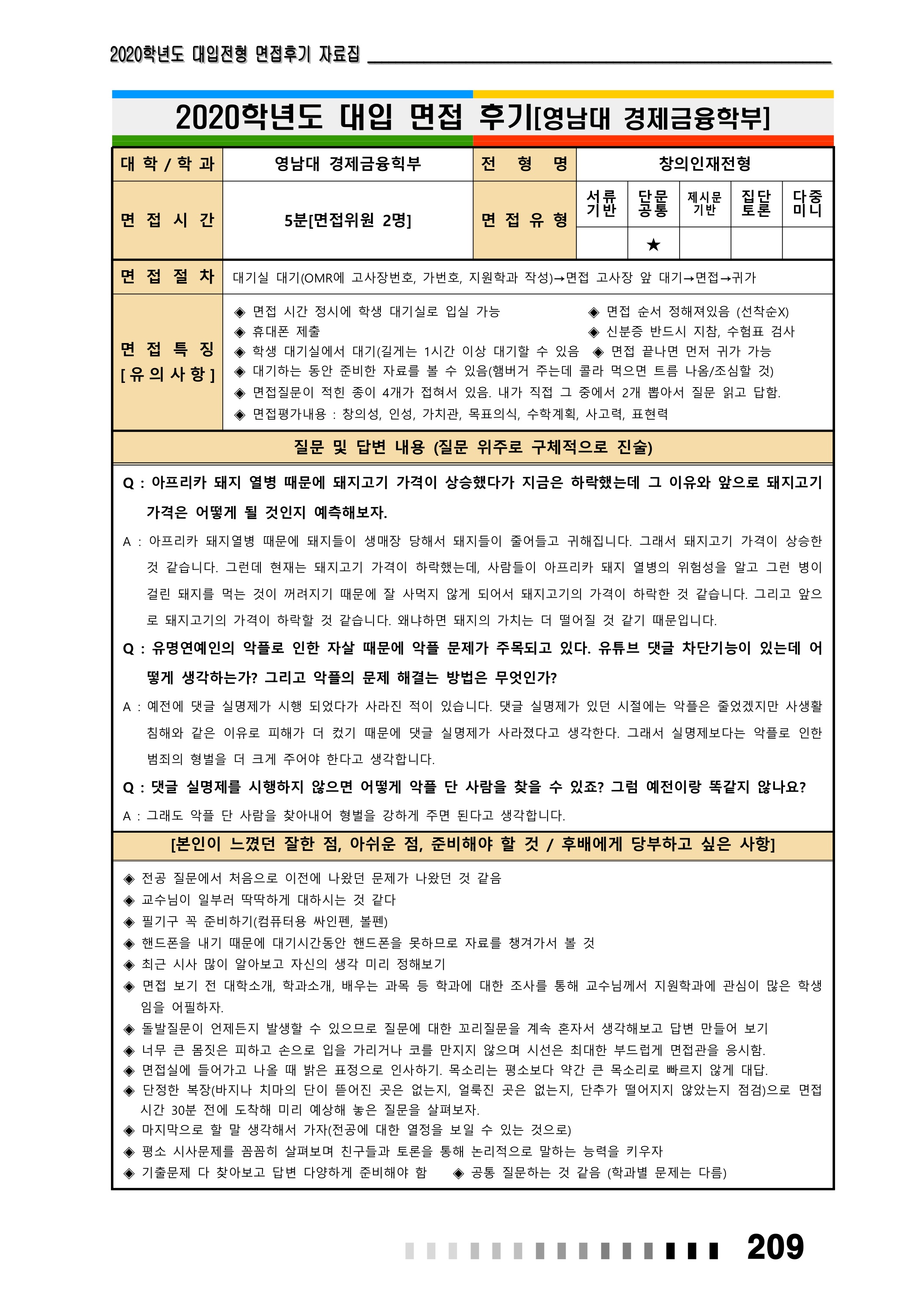 2021학년도 영남대학교 면접 후기3 - 경영학과 2021학년도 영남대학교 면접 후기4 - 경제금융학부