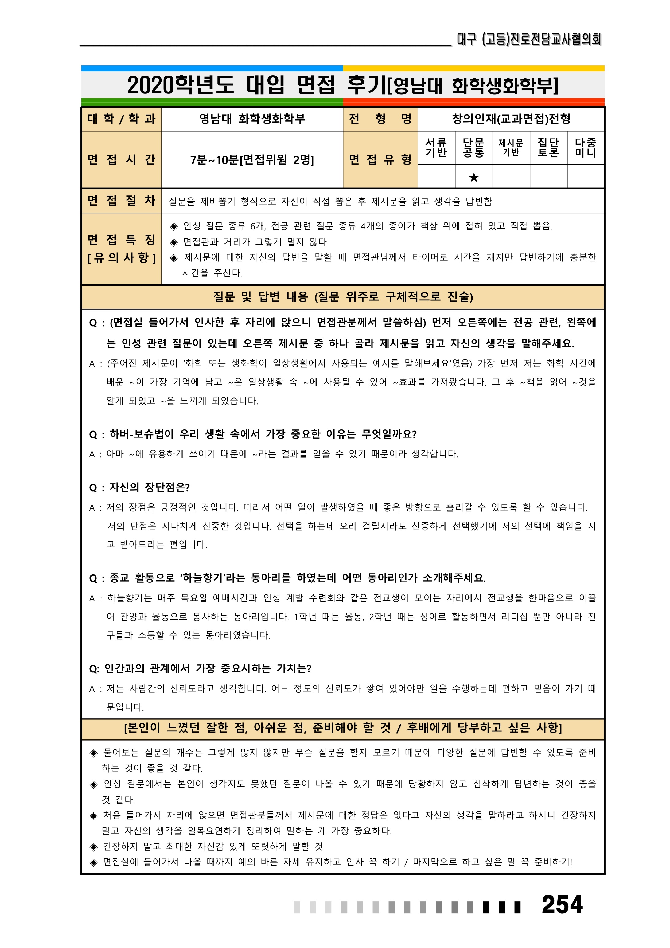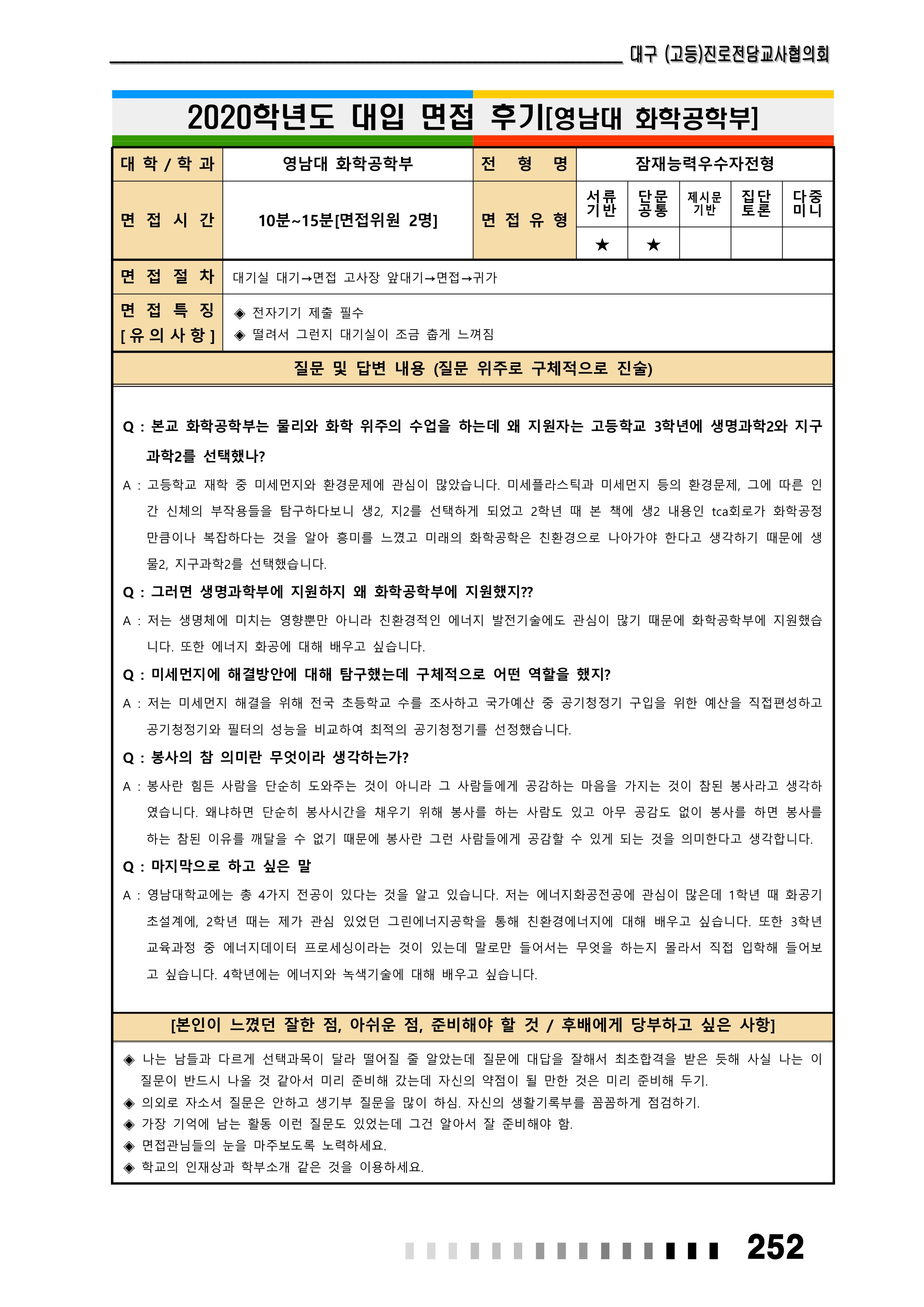 2021학년도 영남대학교 면접 후기50 - 화학공학부 2021학년도 영남대학교 면접 후기51 - 화학생화학부
