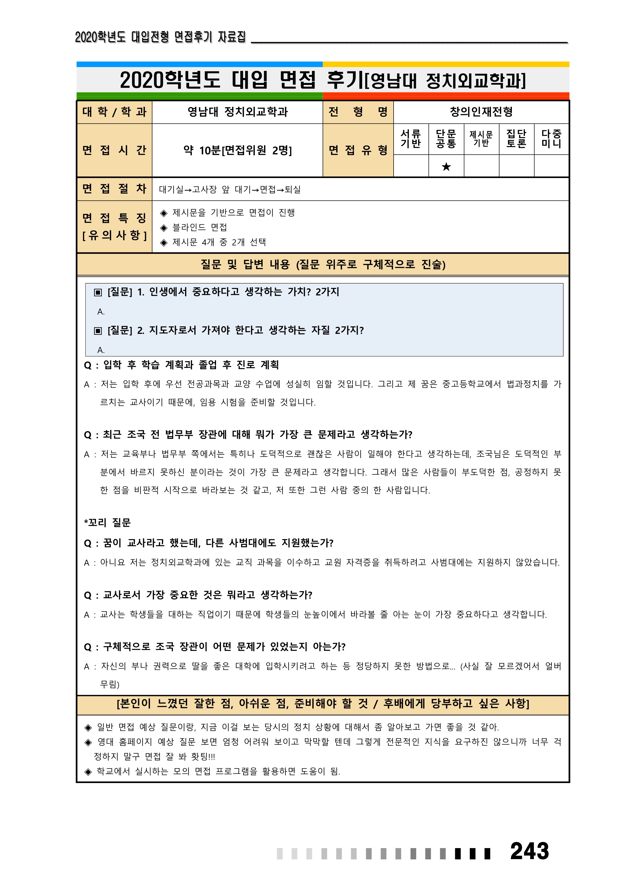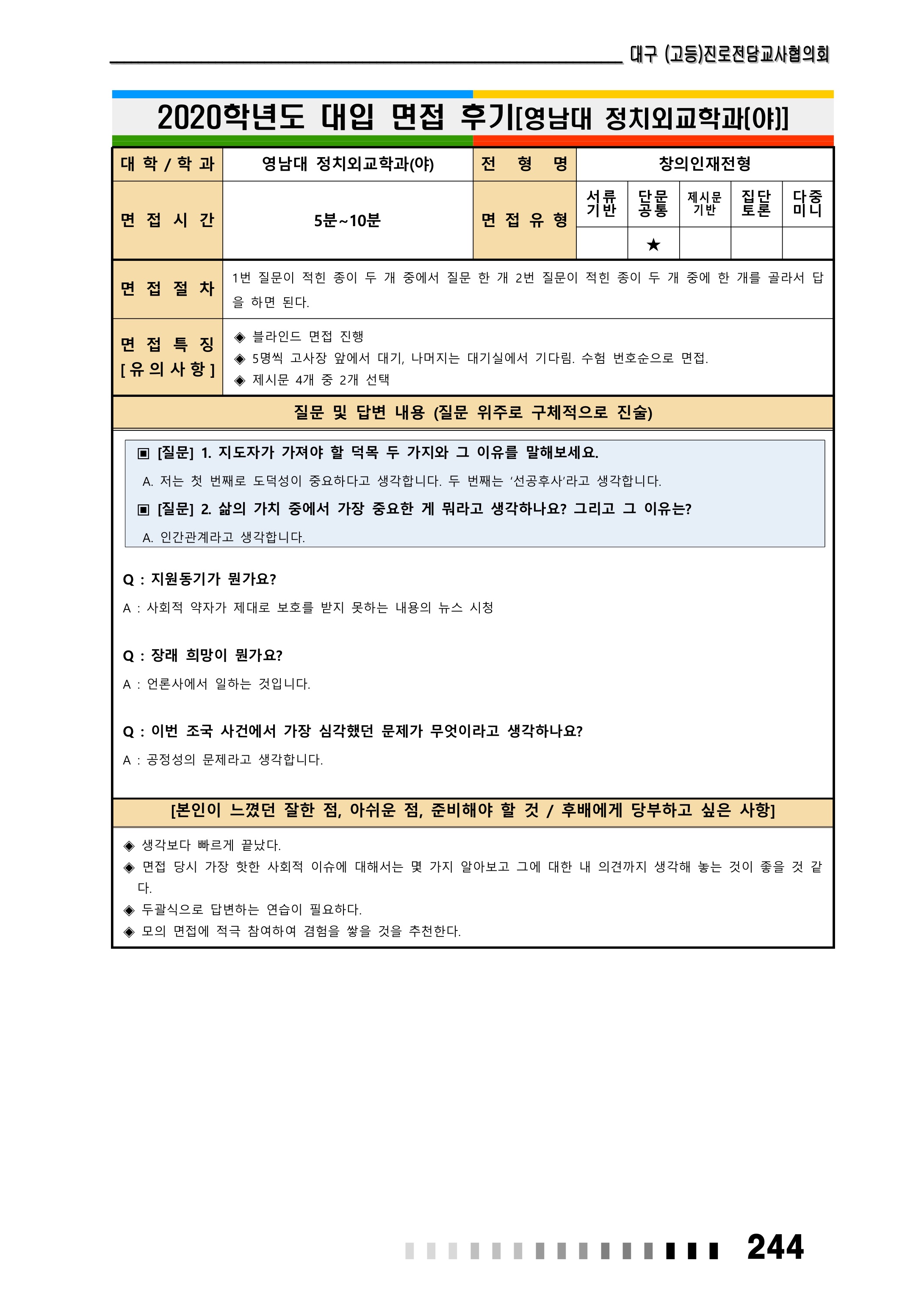 2021학년도 영남대학교 면접 후기40 - 정치외교학과 2021학년도 영남대학교 면접 후기41 - 정치외교학과