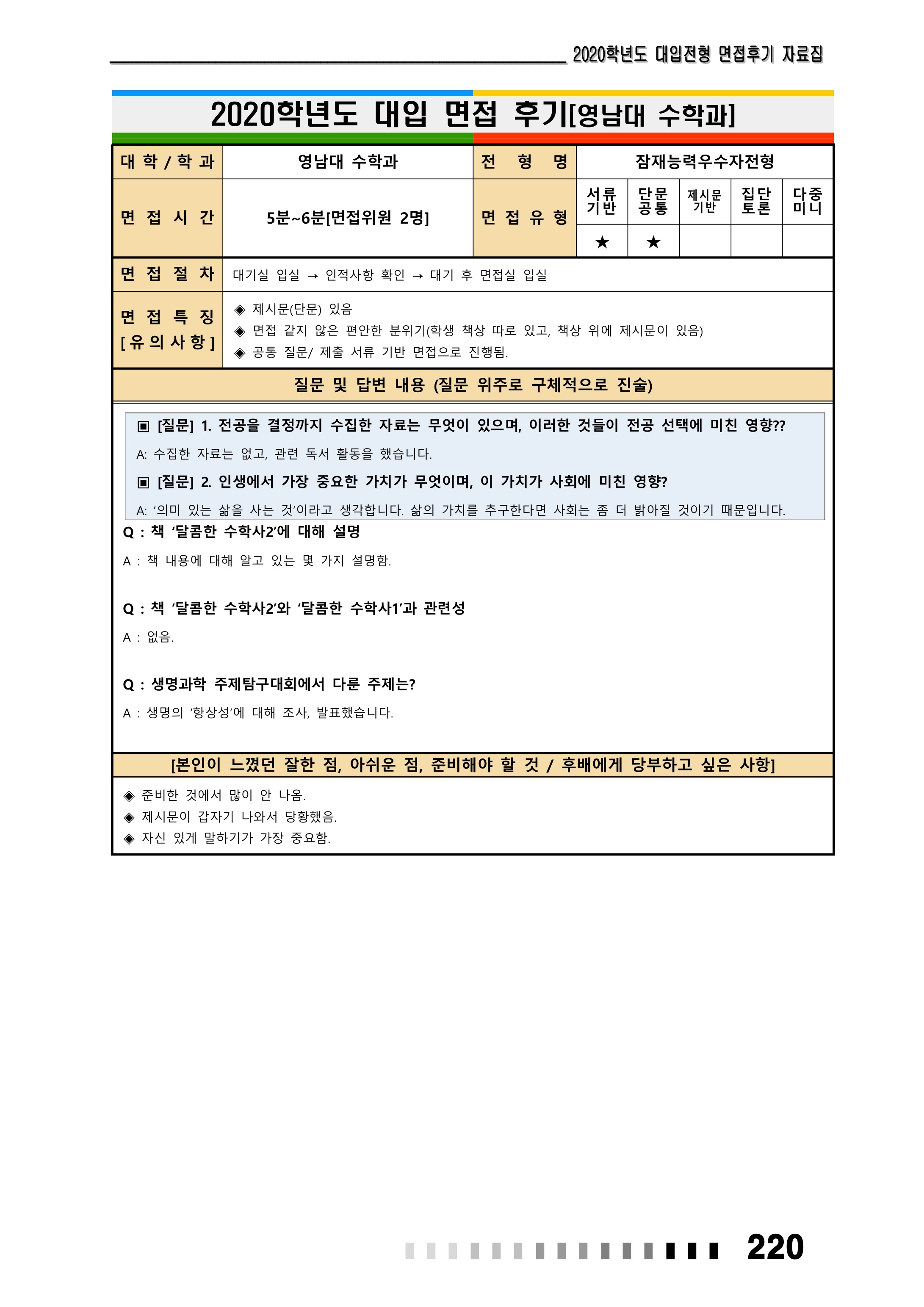 2021학년도 영남대학교 면접 후기15 - 생명과학과 2021학년도 영남대학교 면접 후기16 - 수학과
