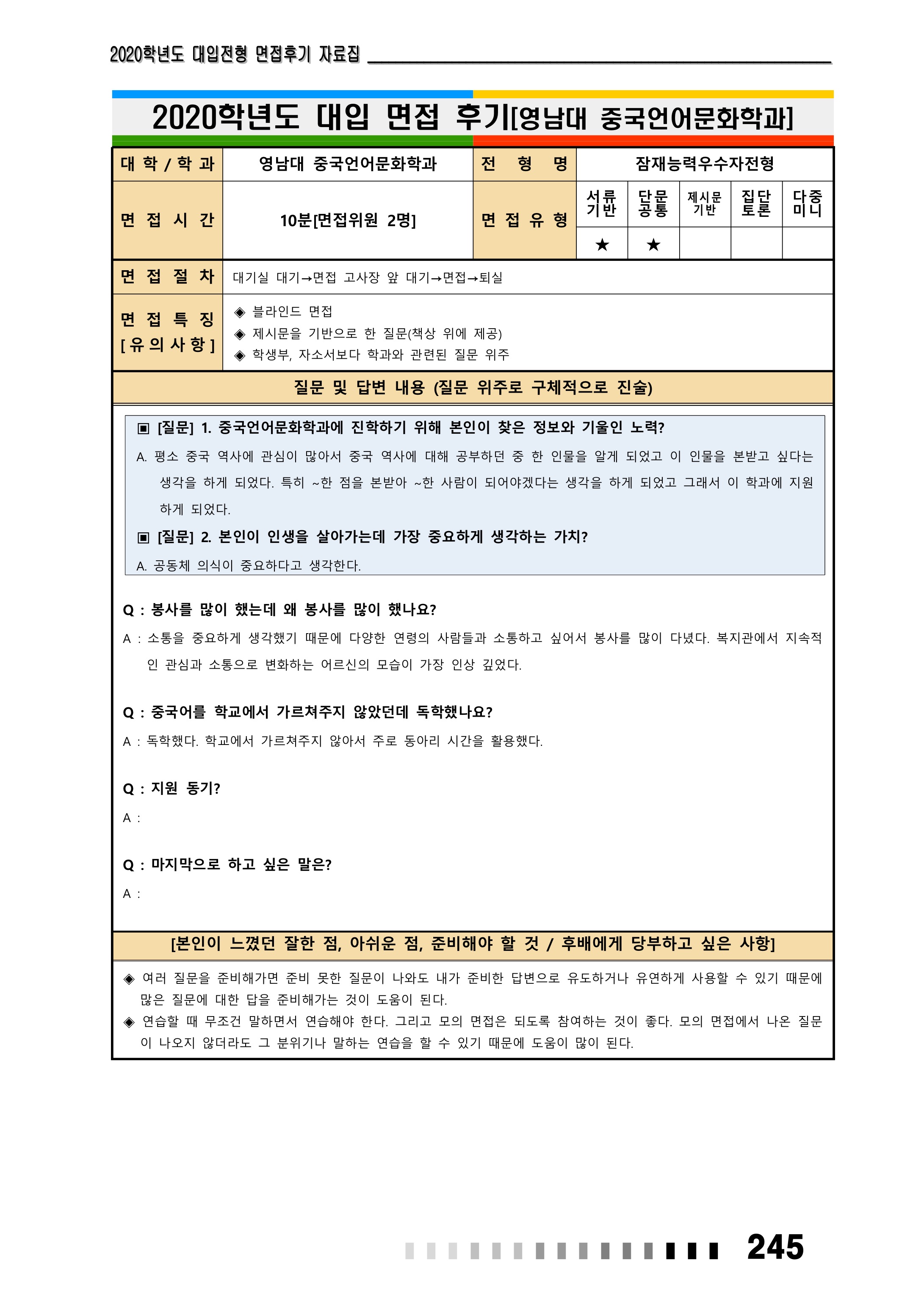 2021학년도 영남대학교 면접 후기47 - 한문교육과 2021학년도 영남대학교 면접 후기48 - 항공운송학과