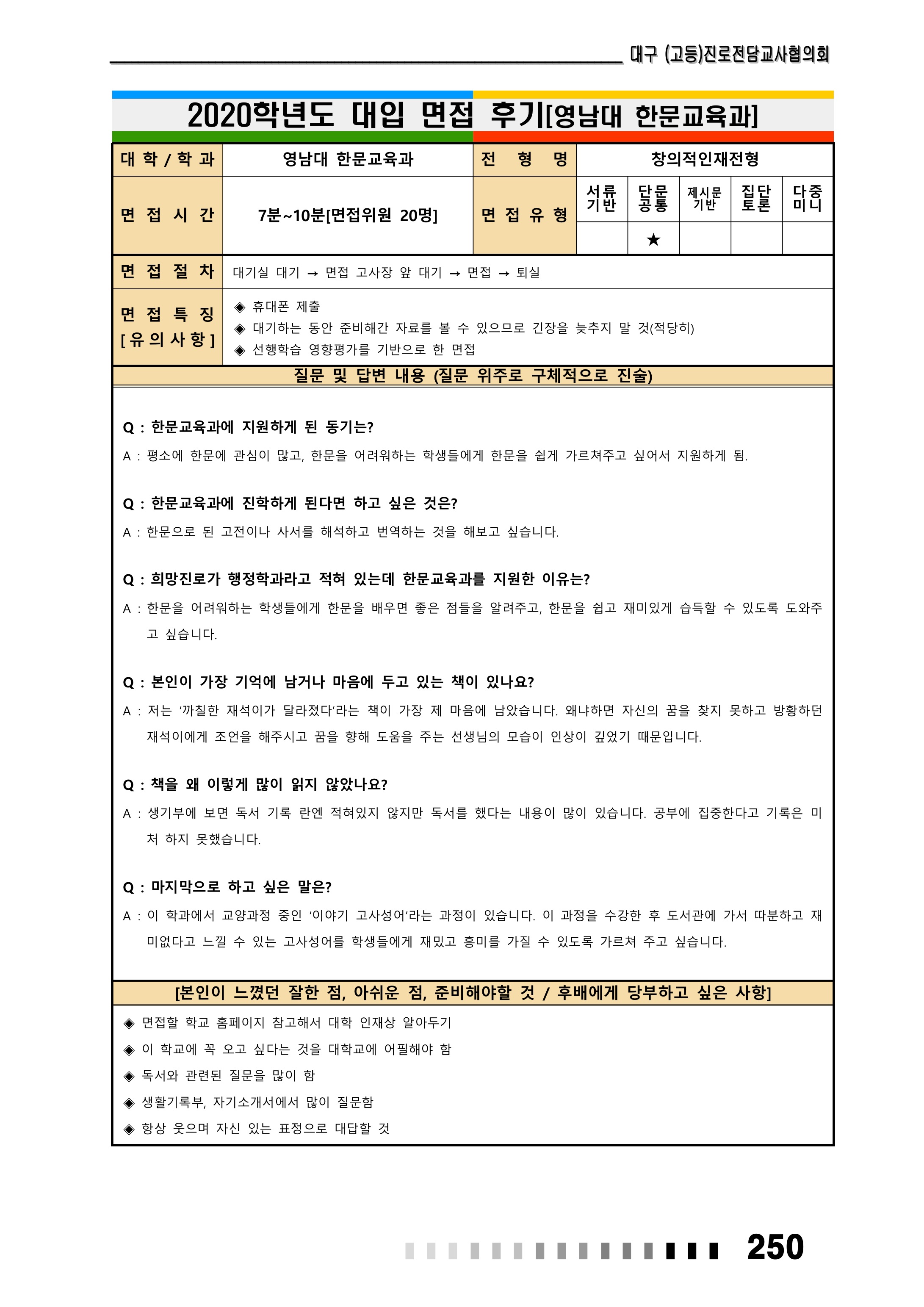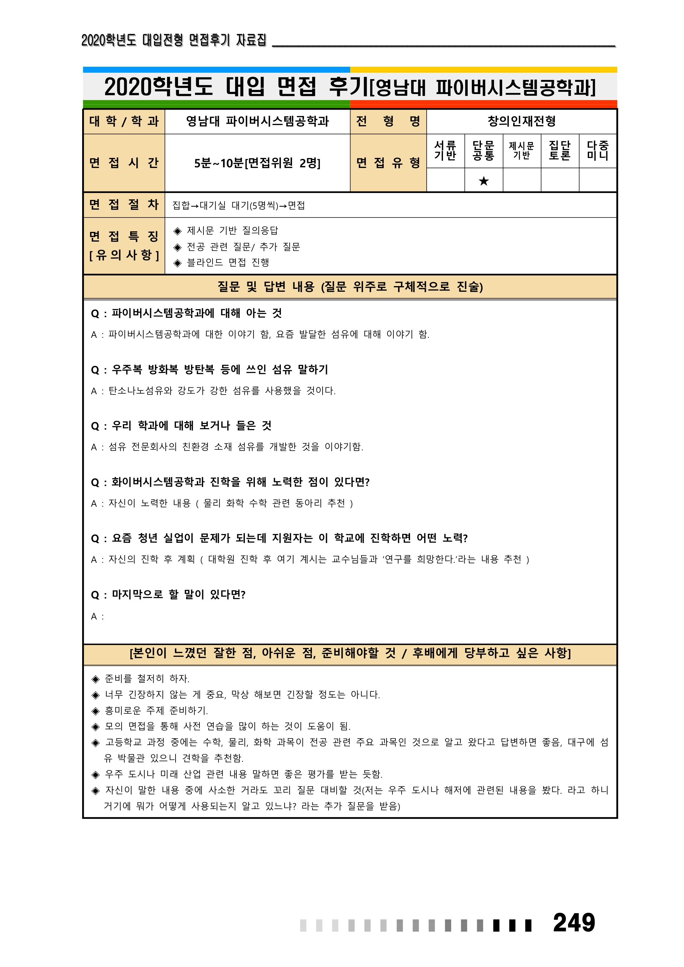 2021학년도 영남대학교 면접 후기47 - 파이버시스템공학과 2021학년도 영남대학교 면접 후기47 - 한문교육과