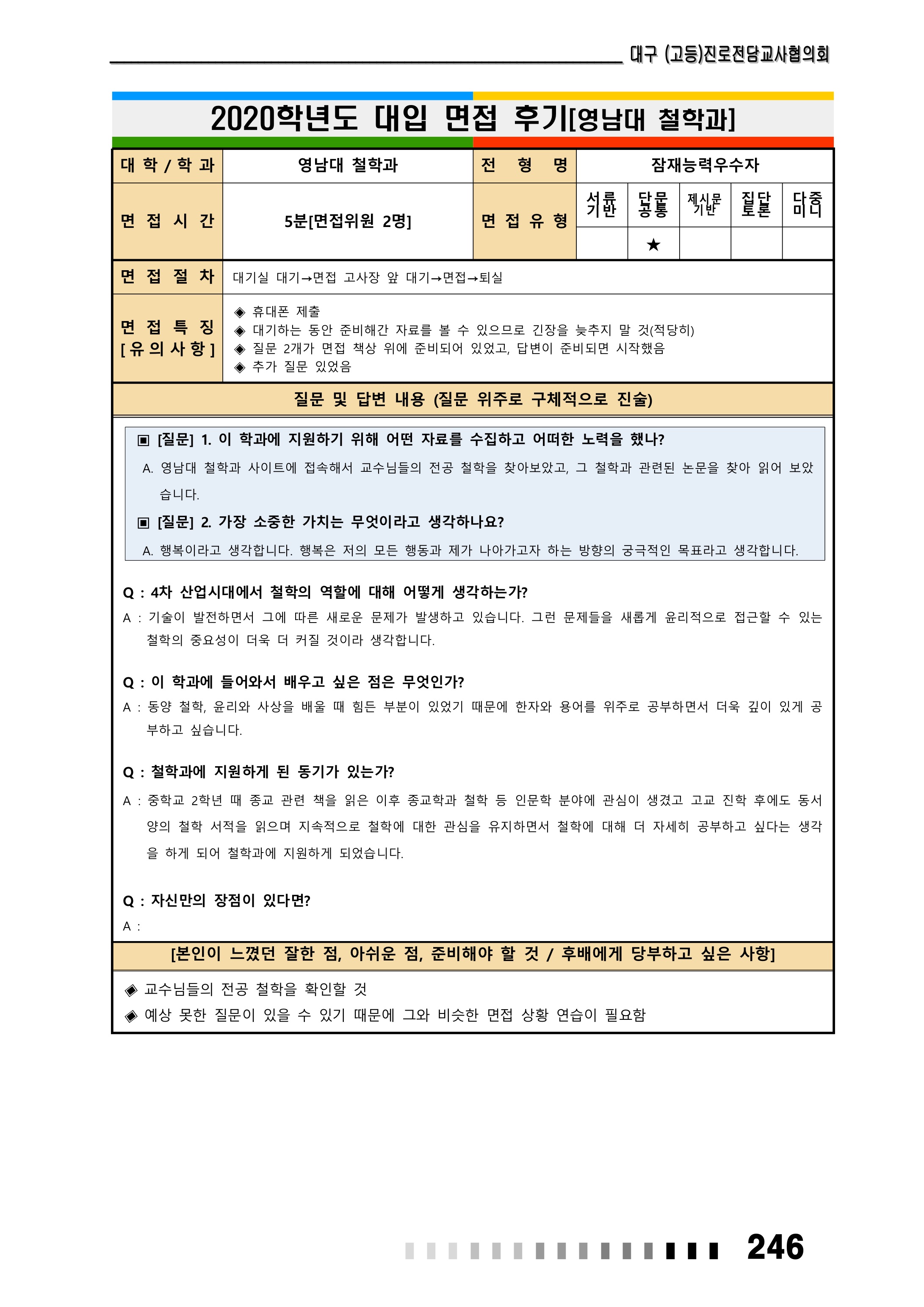 2021학년도 영남대학교 면접 후기44 - 철학과 2021학년도 영남대학교 면접 후기45 - 컴퓨터공학과