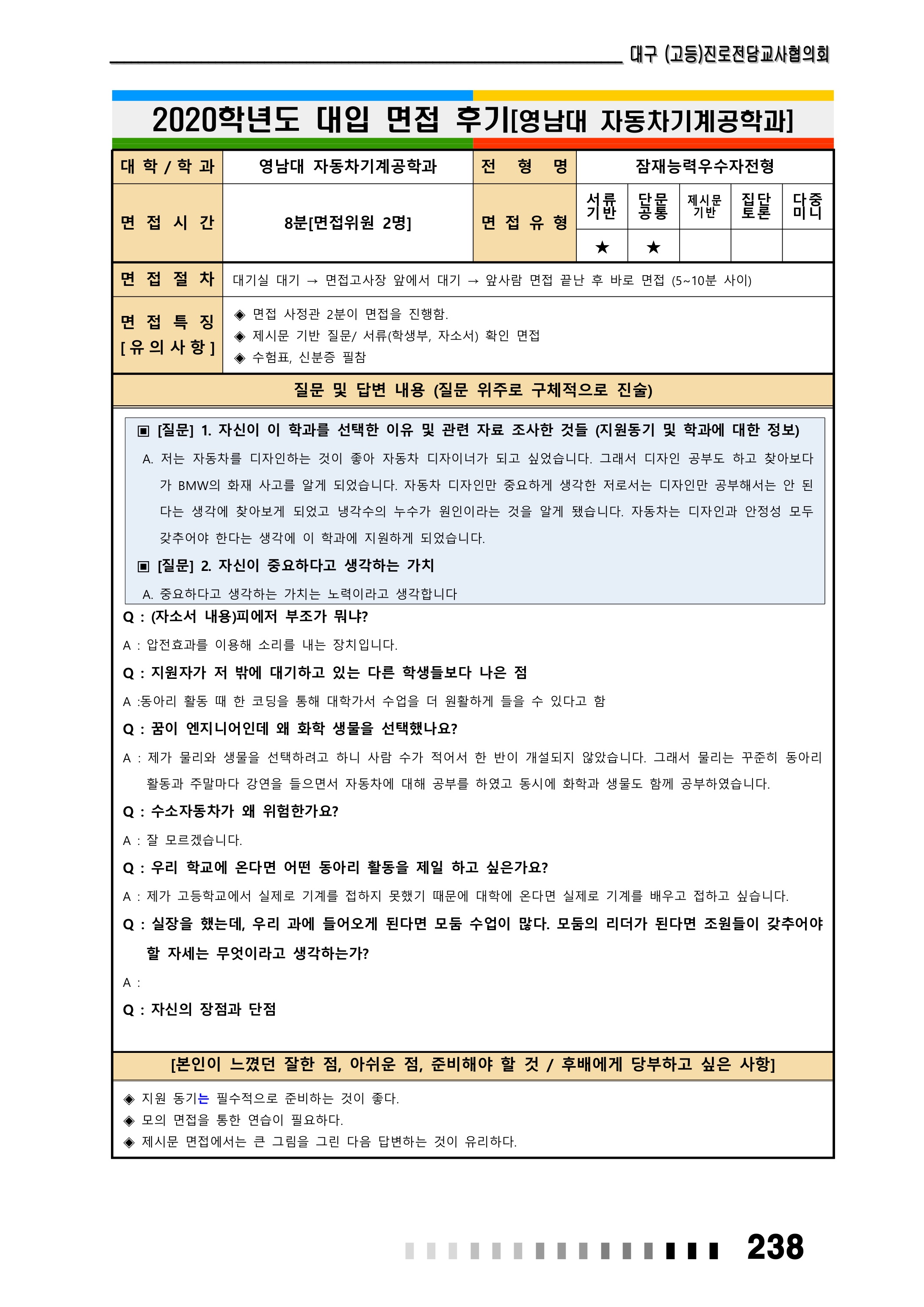 2021학년도 영남대학교 면접 후기36 - 자동차기계공학과 2021학년도 영남대학교 면접 후기37 - 전기공학과