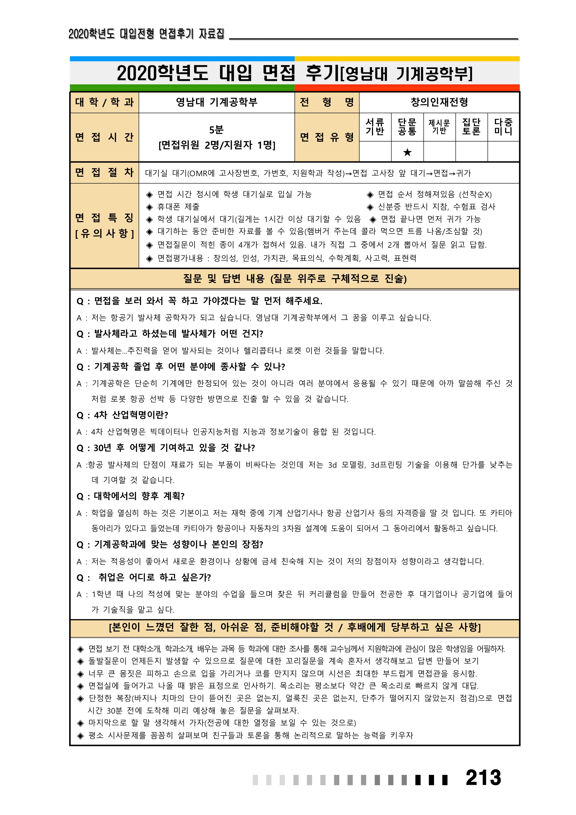 2021학년도 영남대학교 면접 후기8 - 기계공학부 2021학년도 영남대학교 면접 후기9 - 도시공학과