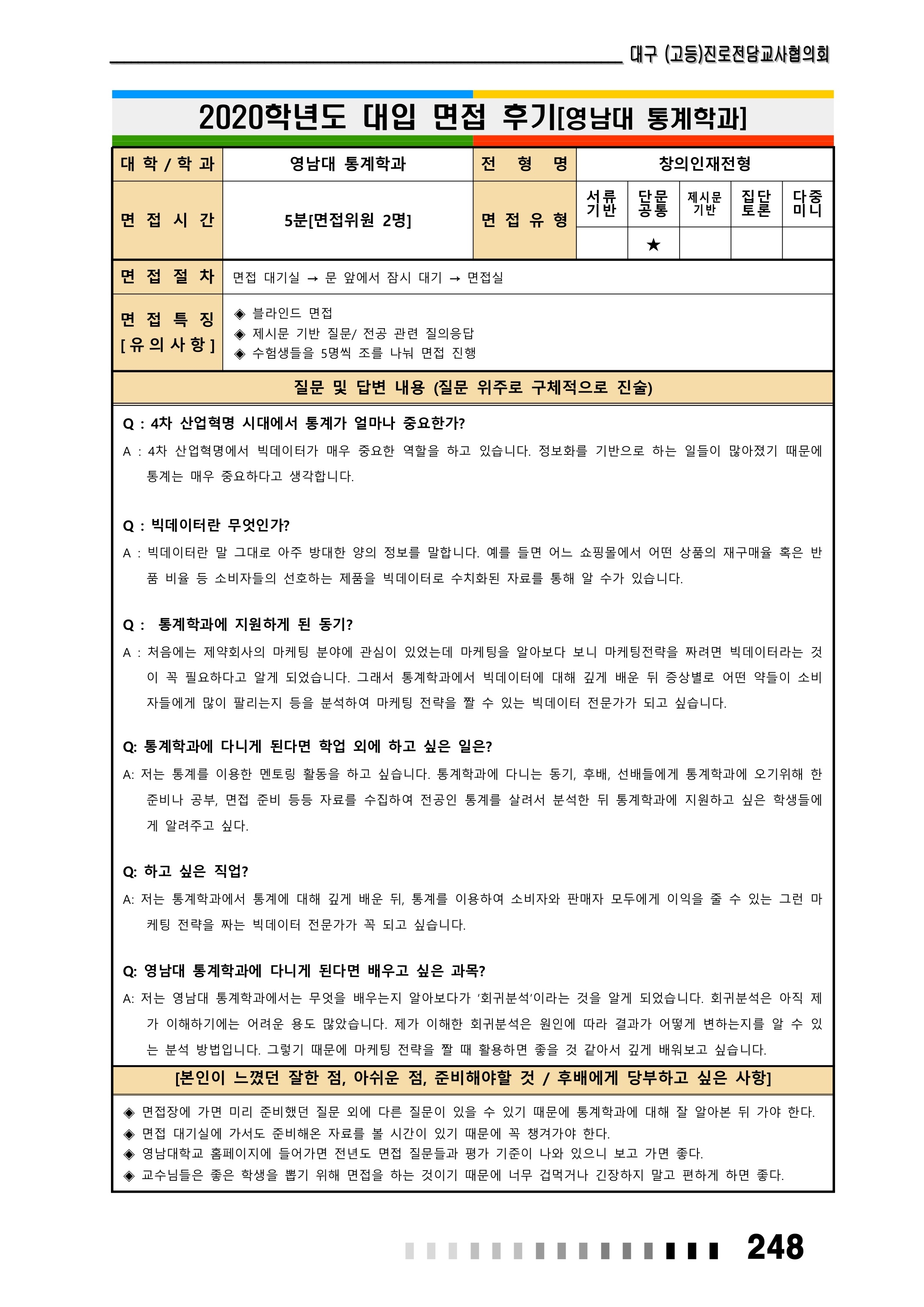 2021학년도 영남대학교 면접 후기46 - 통계학과 2021학년도 영남대학교 면접 후기47 - 파이버시스템공학과