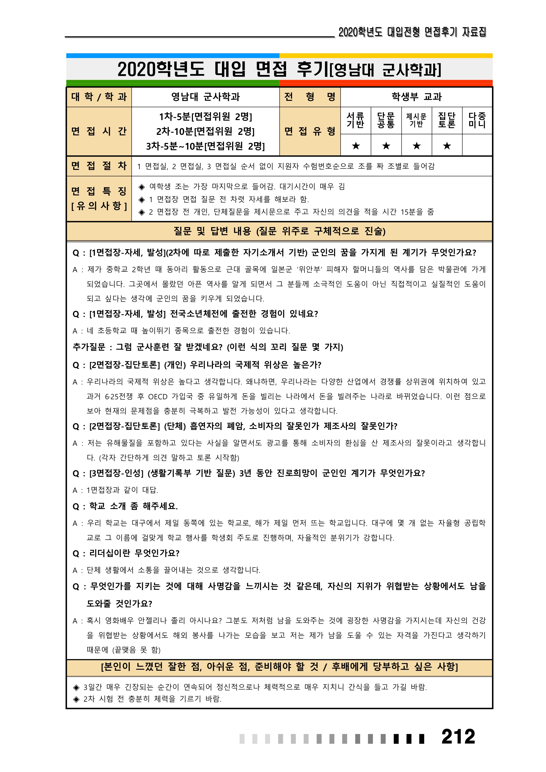 2021학년도 영남대학교 면접 후기7 - 군사학과 2021학년도 영남대학교 면접 후기8 - 기계공학부