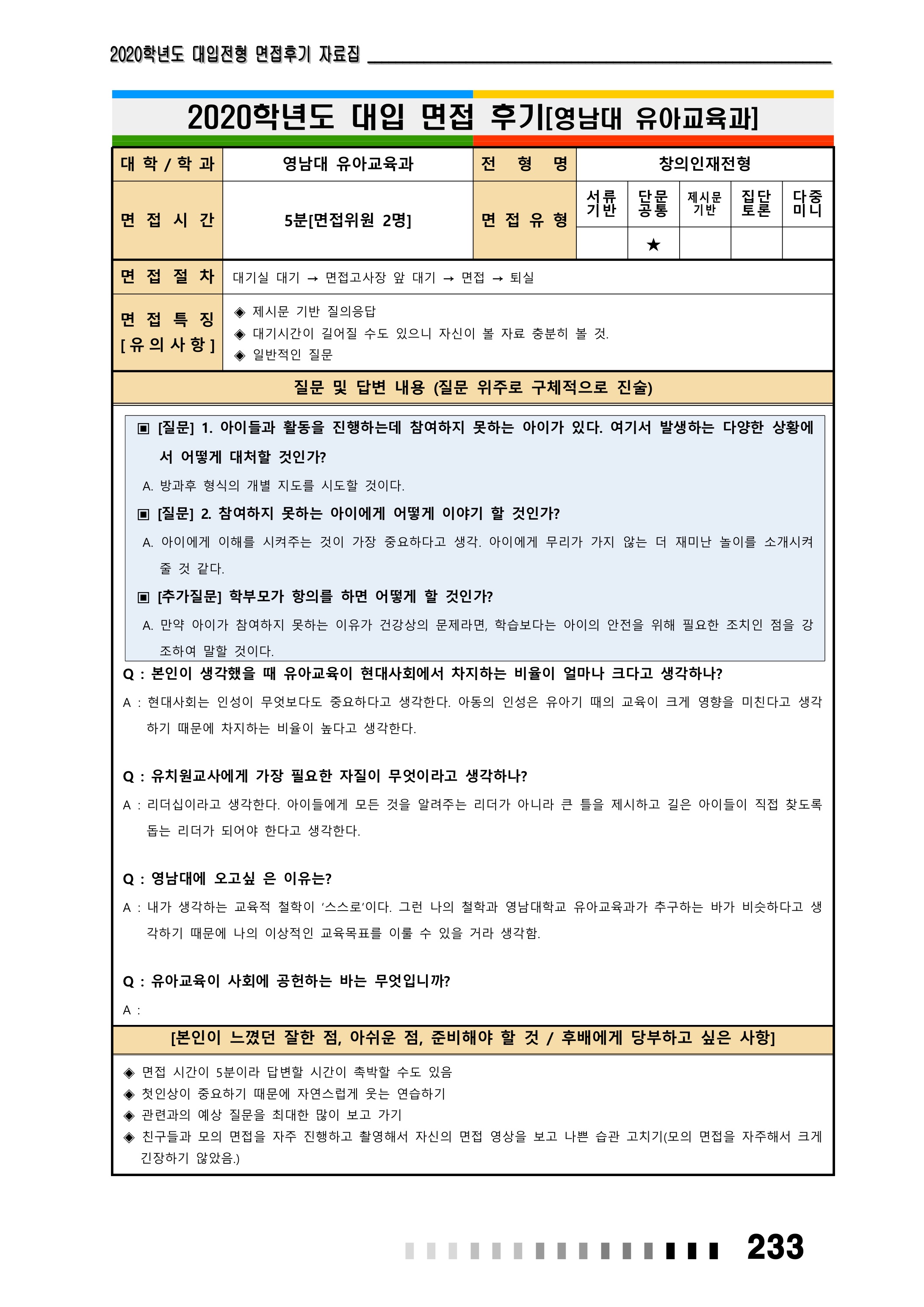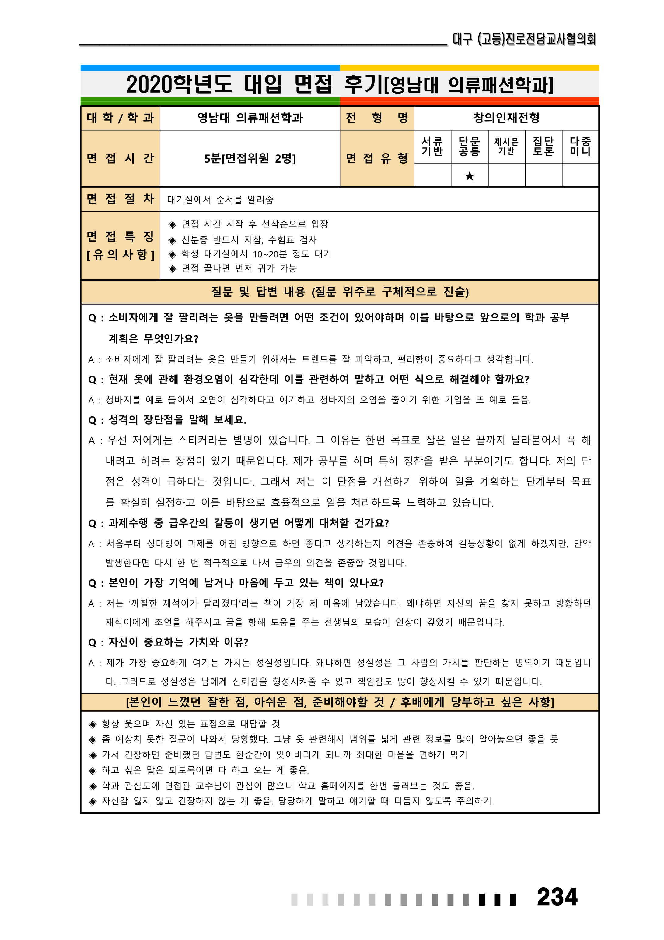 2021학년도 영남대학교 면접 후기30 - 유아교육과 2021학년도 영남대학교 면접 후기31 - 의류패션학과