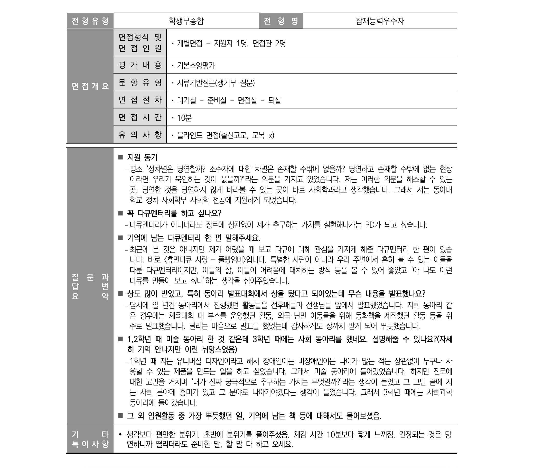 2021학년도 동아대학교 면접 후기46 - 정치사회학부