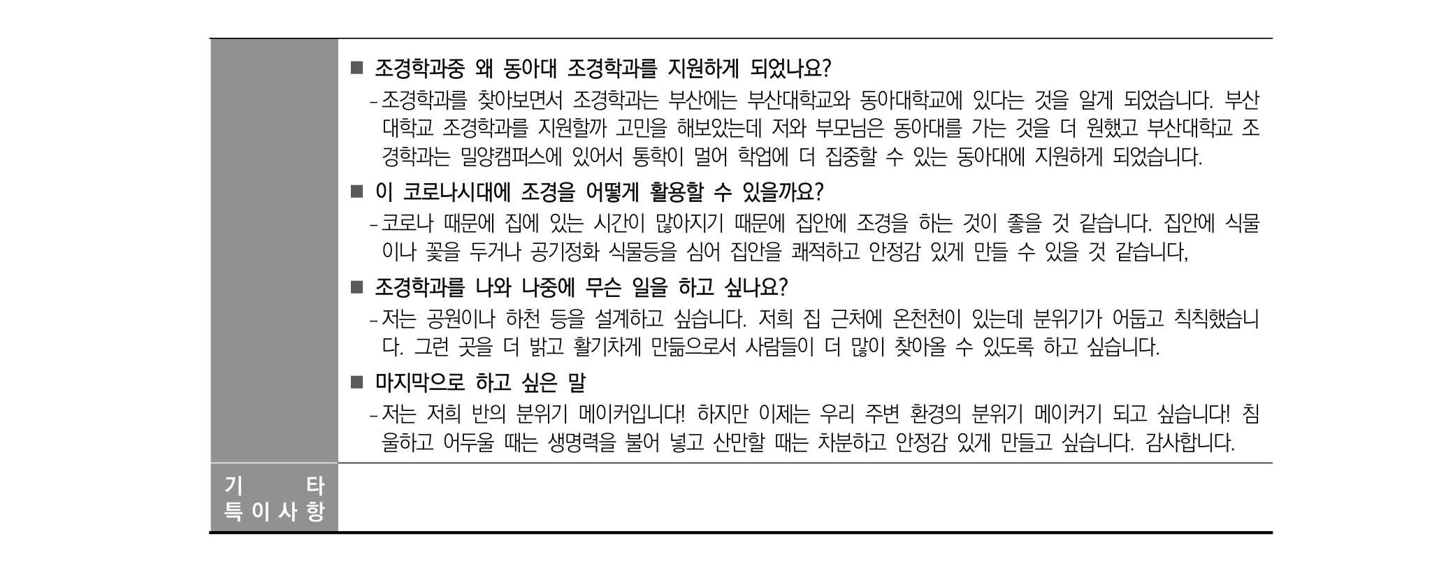 2021학년도 동아대학교 면접 후기48 - 조경학과