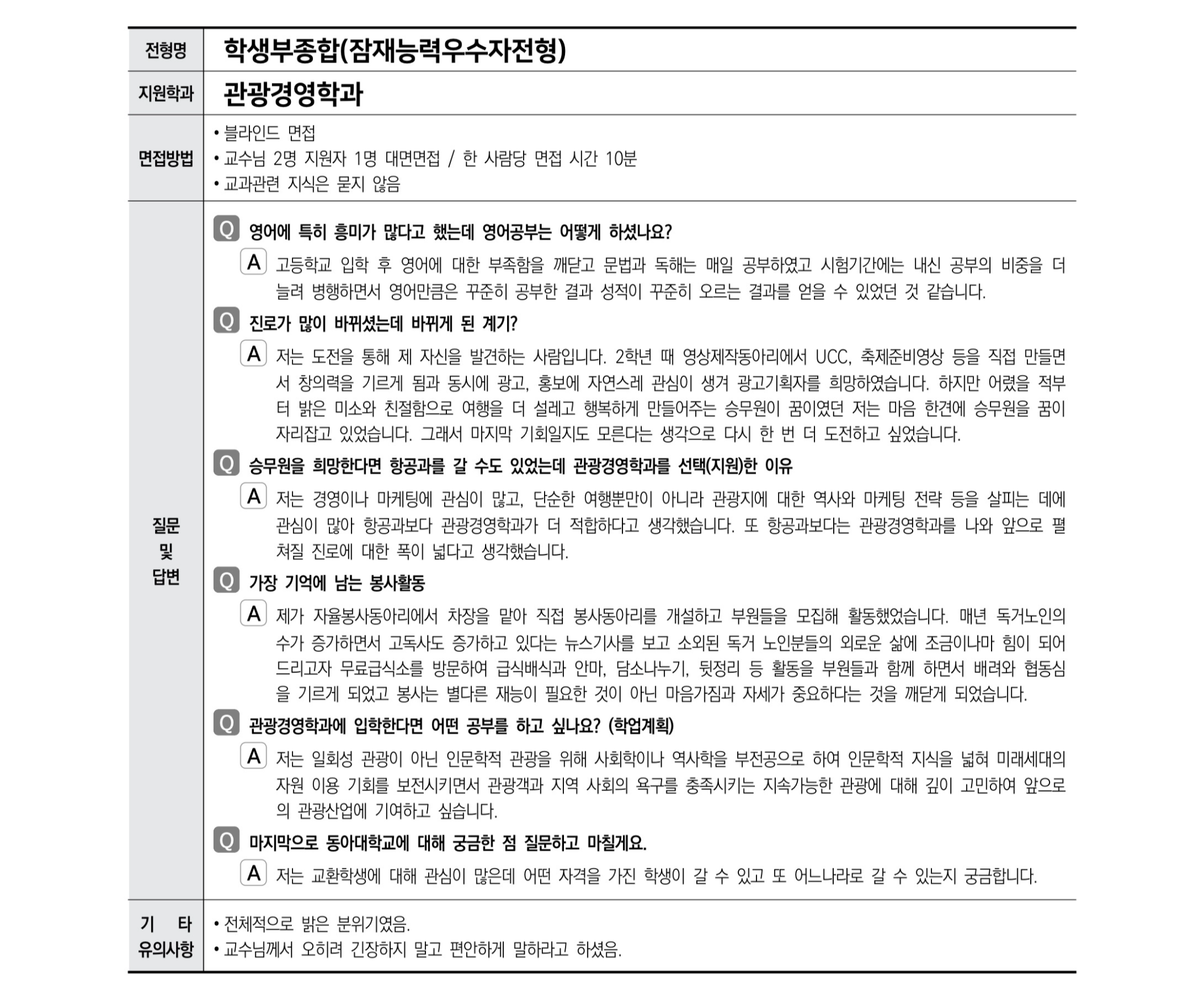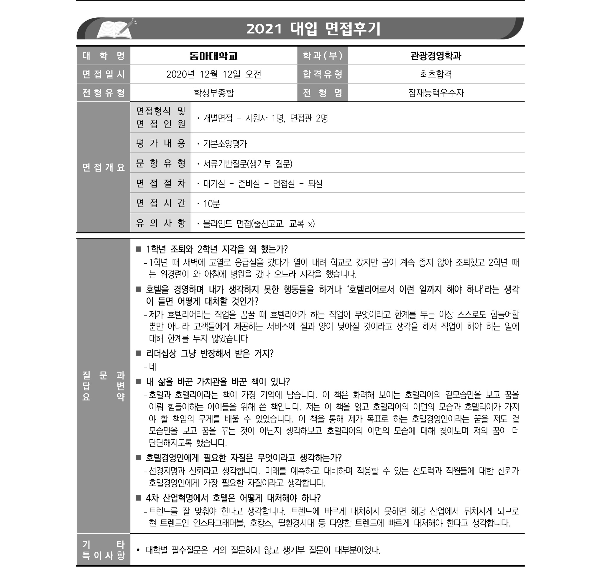 2021학년도 동아대학교 면접 후기15 - 관광경영학과