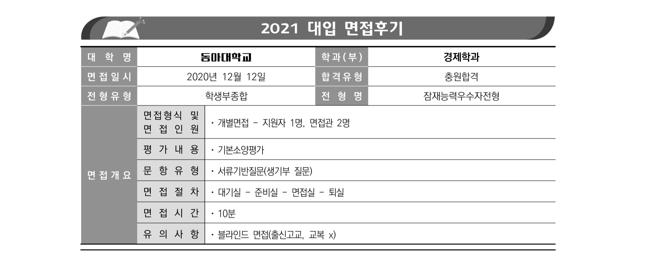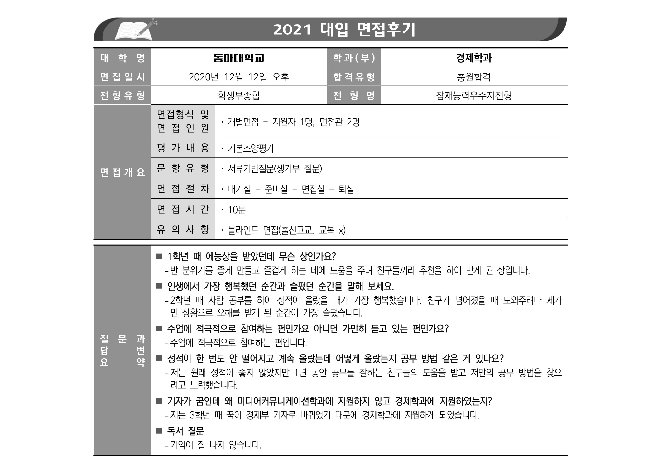 2021학년도 동아대학교 면접 후기9 - 경제학과