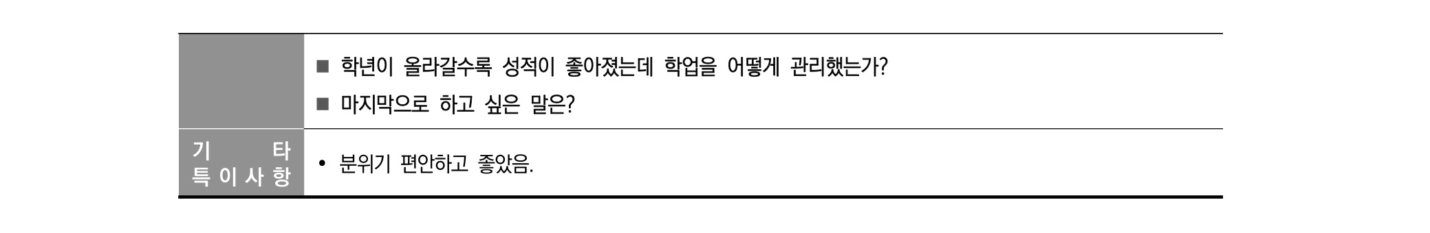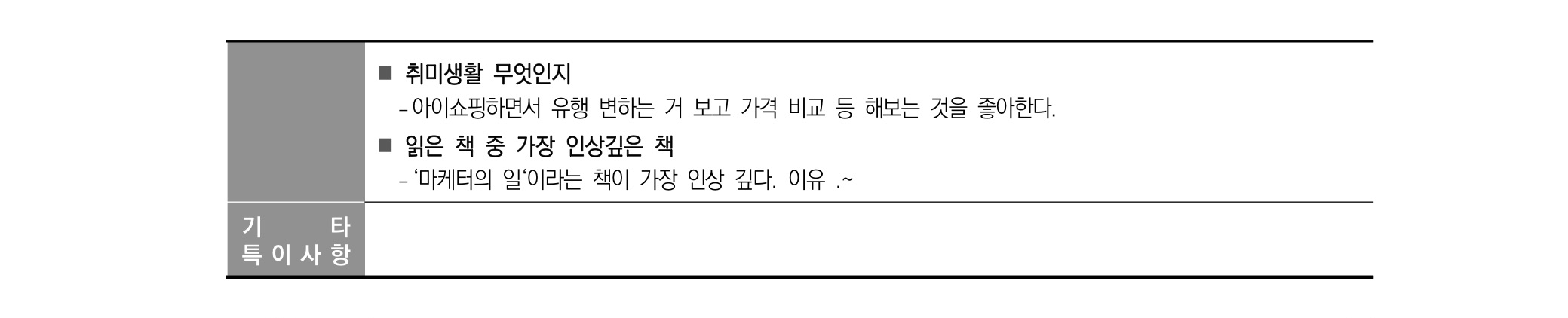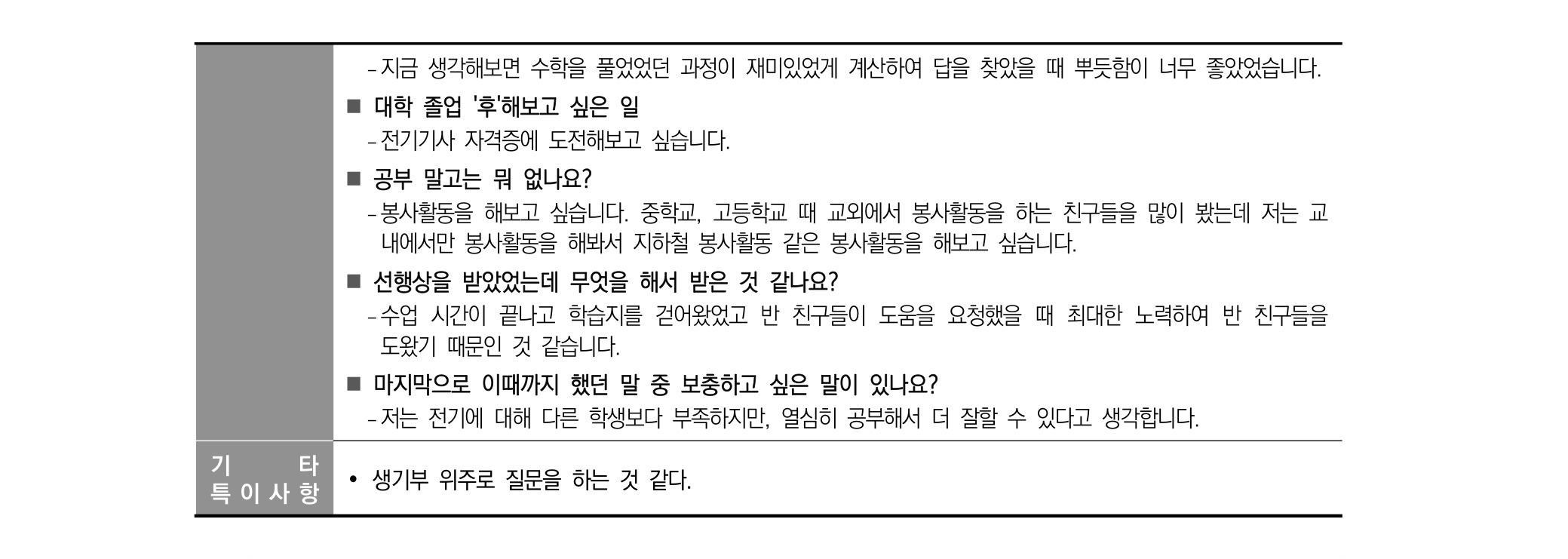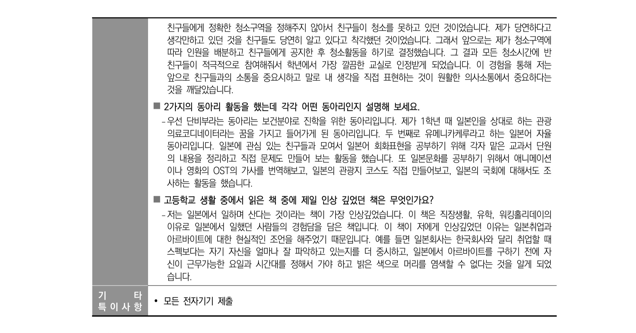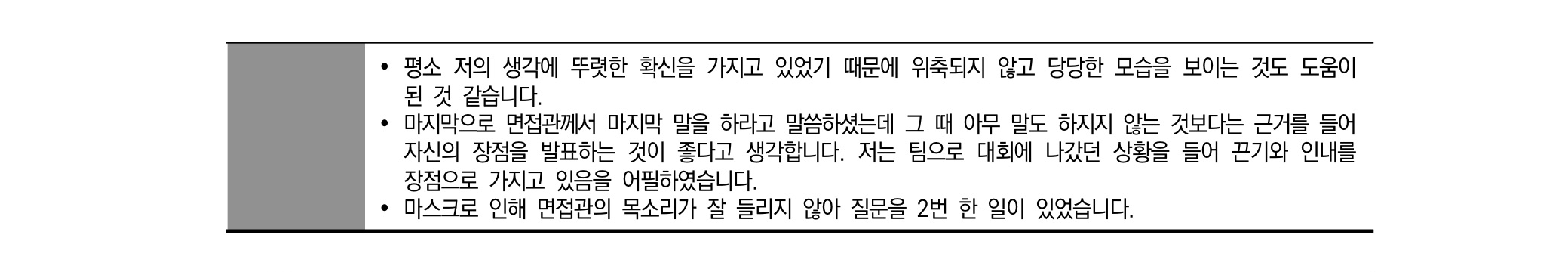 · 고사실에 입장하여 4분간 면접관과의 대화를 통해 자신의 생각을 전달