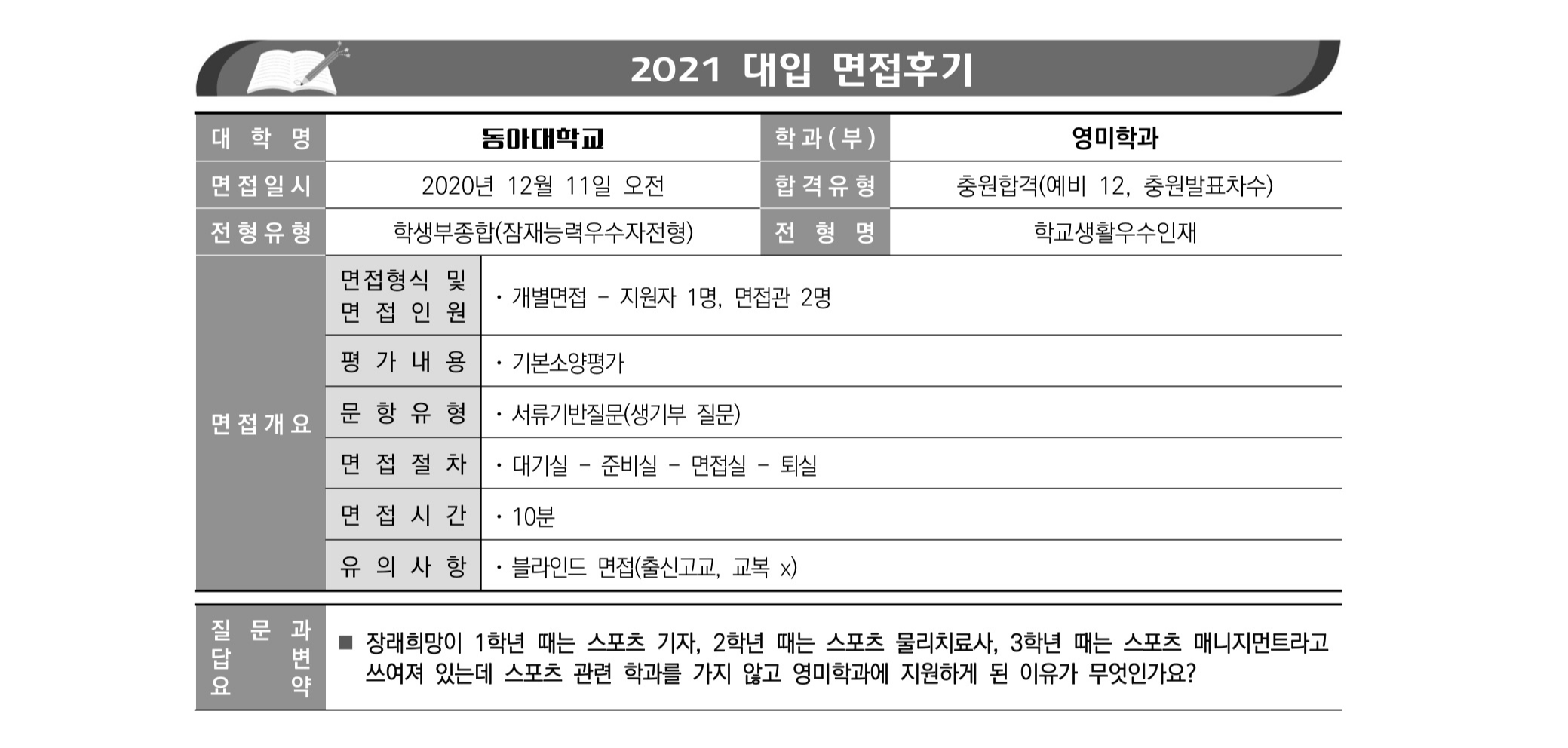 2021학년도 동아대학교 면접 후기29 - 영미학과