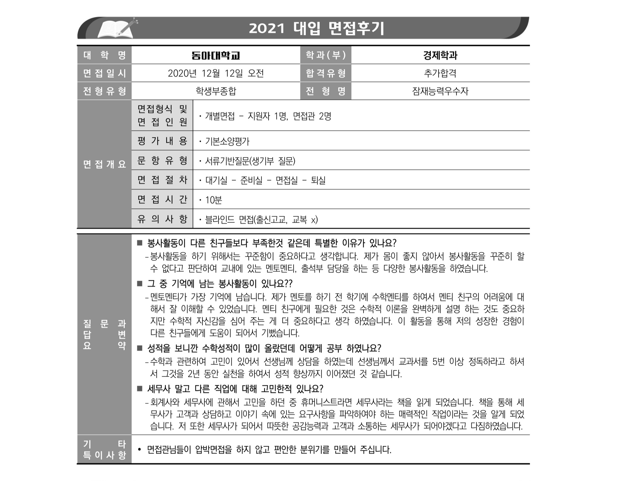2021학년도 동아대학교 면접 후기8 - 경제학과
