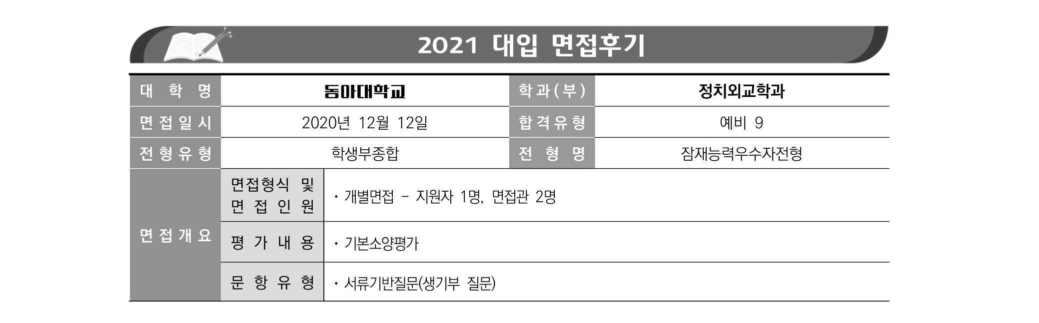 2021학년도 동아대학교 면접 후기47 - 정치외교학과