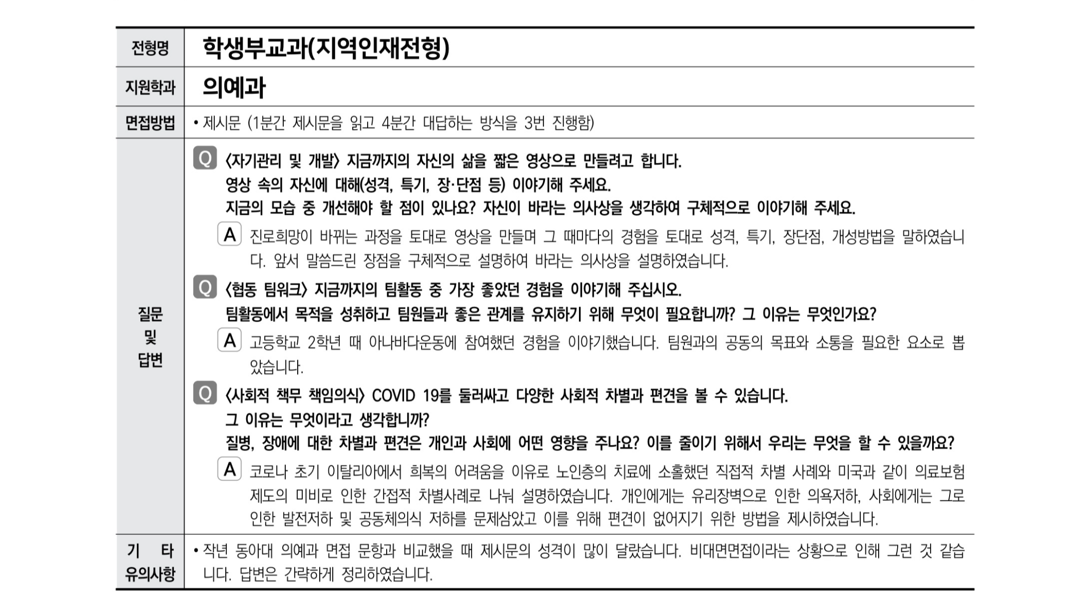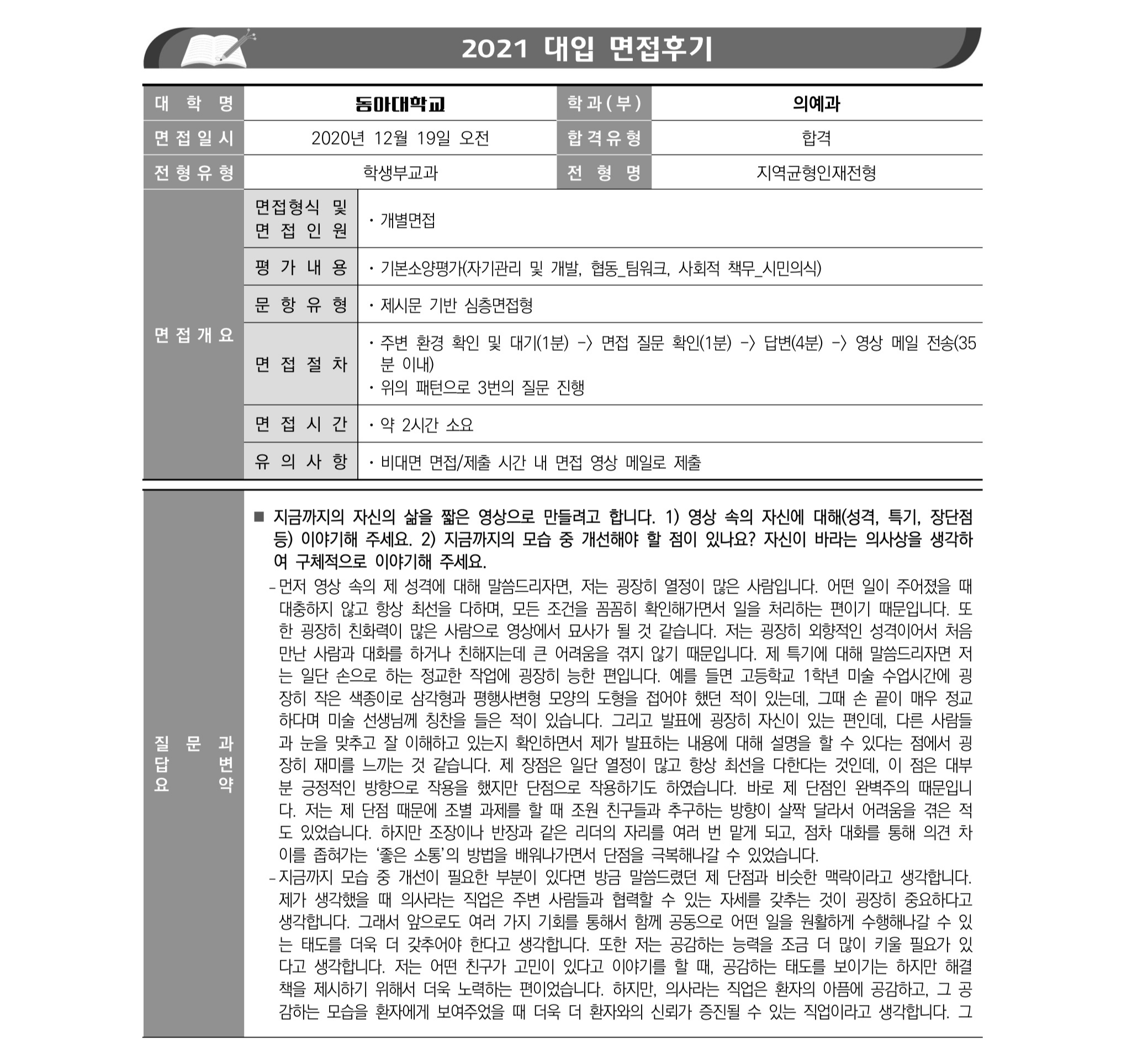 2021학년도 동아대학교 면접 후기36 - 의예과