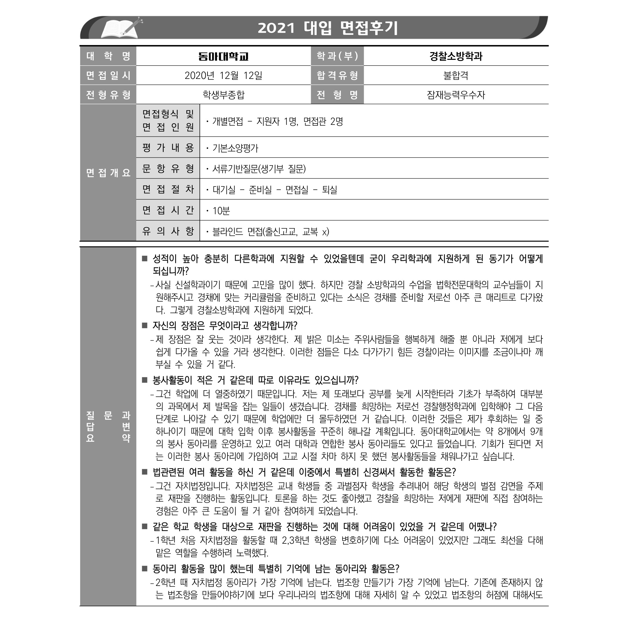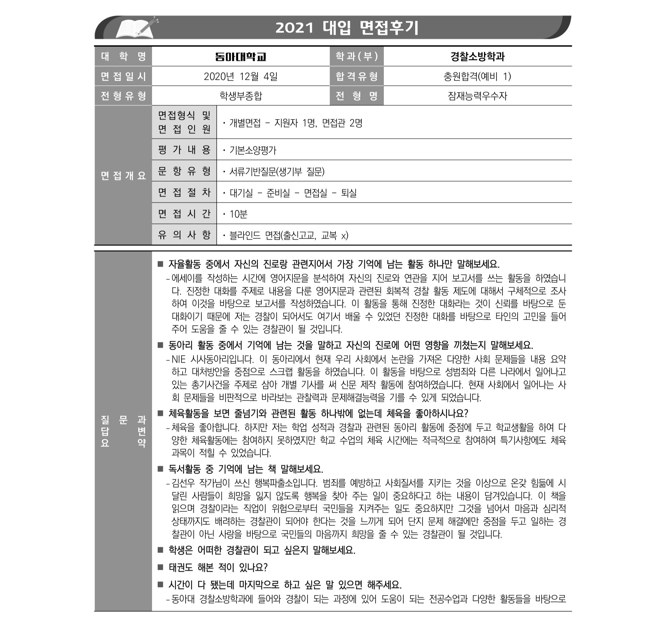 2021학년도 동아대학교 면접 후기11 - 경찰소방학과