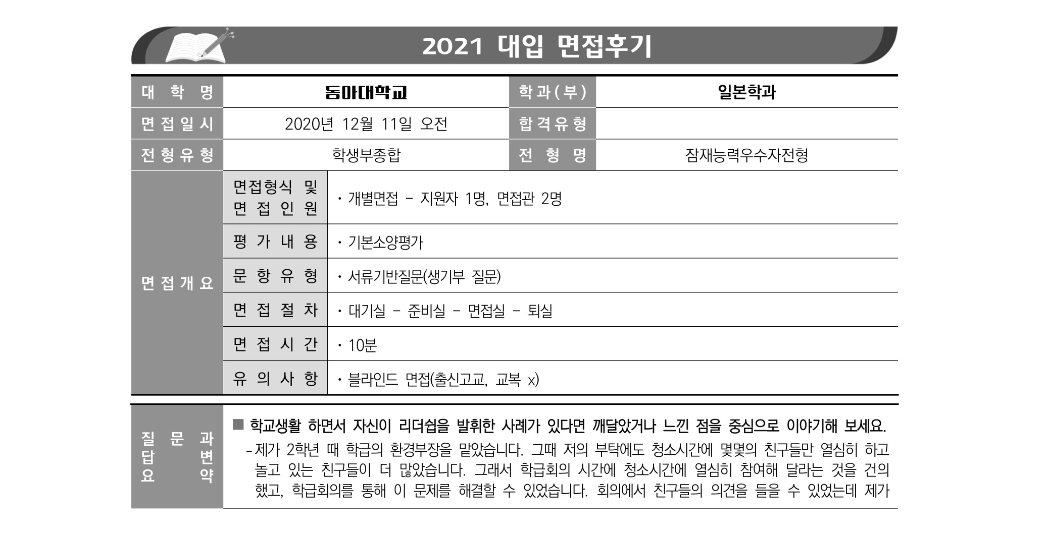 2021학년도 동아대학교 면접 후기41 - 일본학과