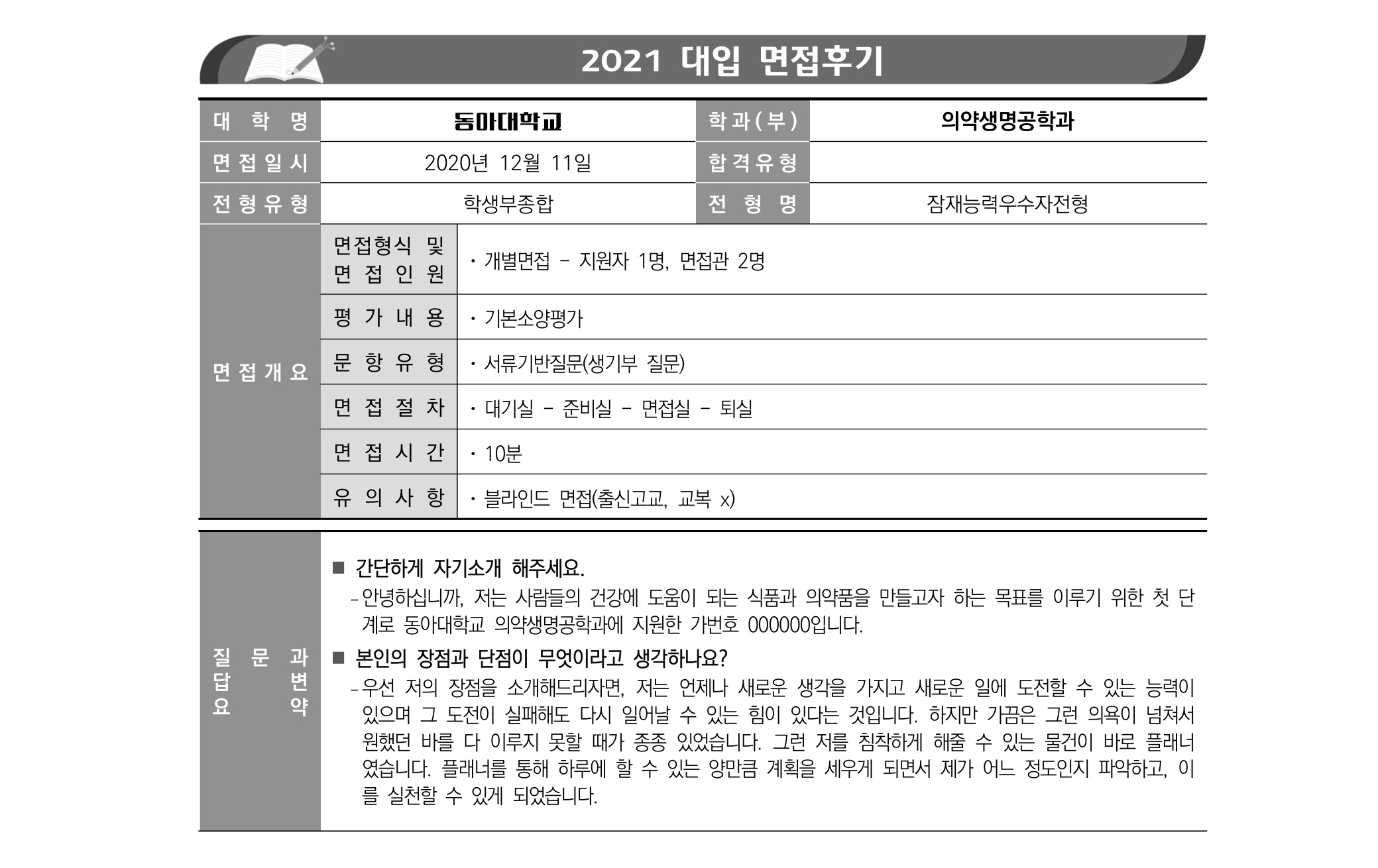 2021학년도 동아대학교 면접 후기35 - 의약생명공학과 2021학년도 동아대학교 면접 후기36 - 의예과