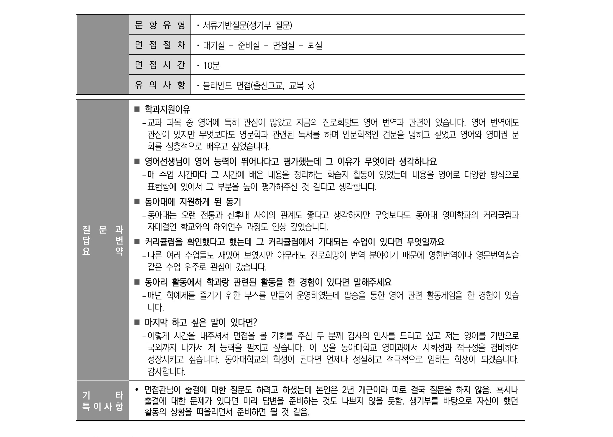 2021학년도 동아대학교 면접 후기28 - 영미학과