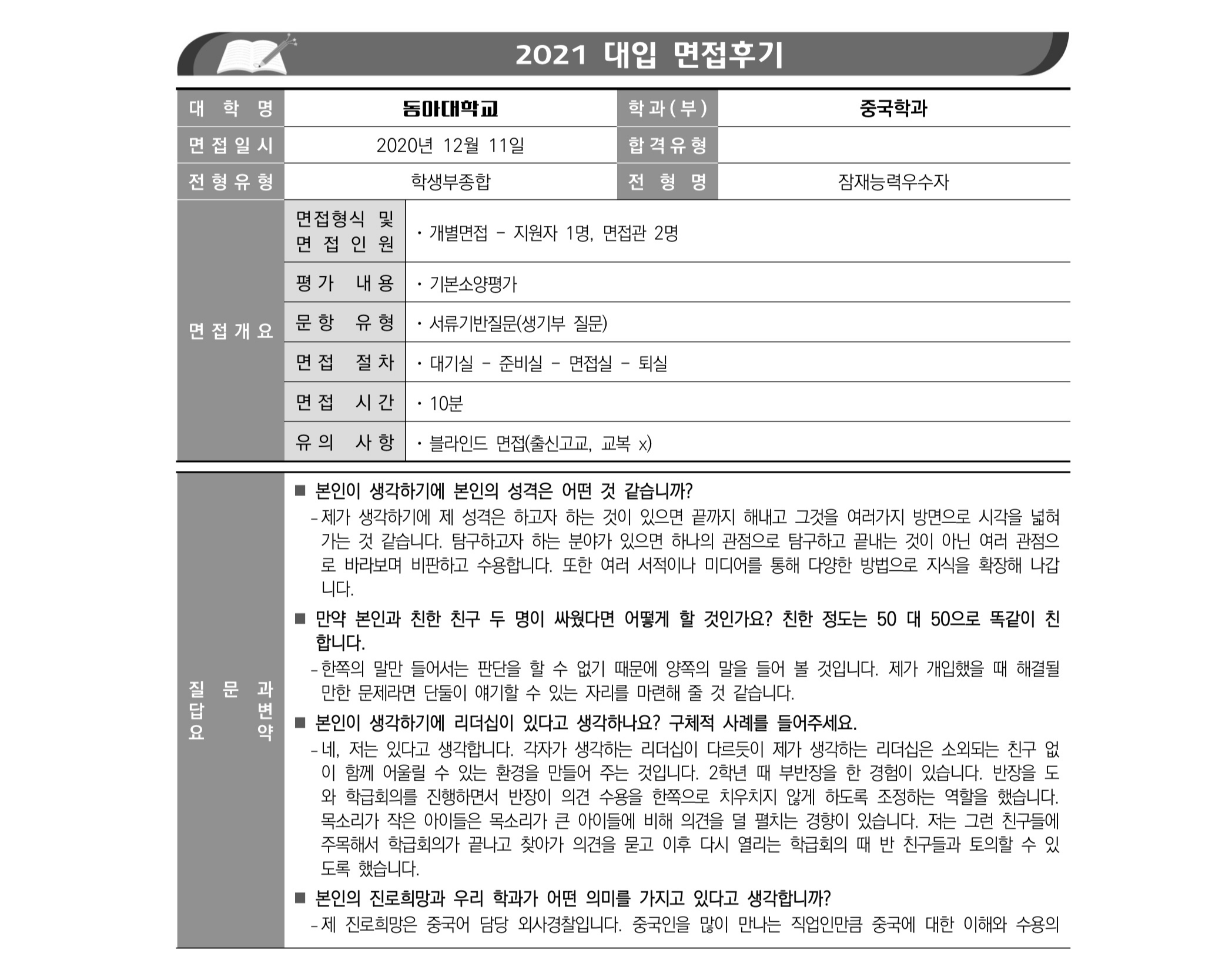 2021학년도 동아대학교 면접 후기51 - 중국학과