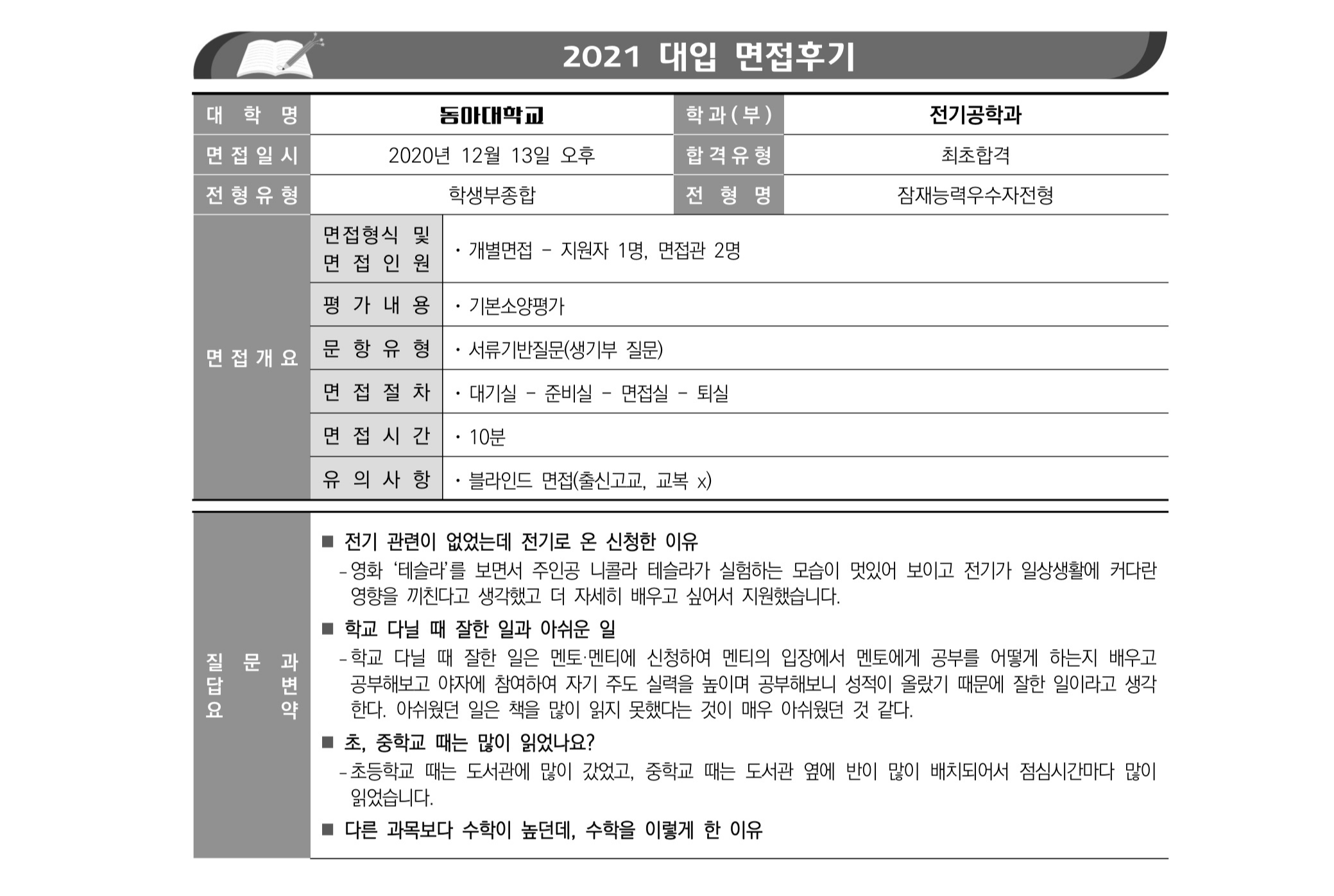 2021학년도 동아대학교 면접 후기43 - 전기공학과