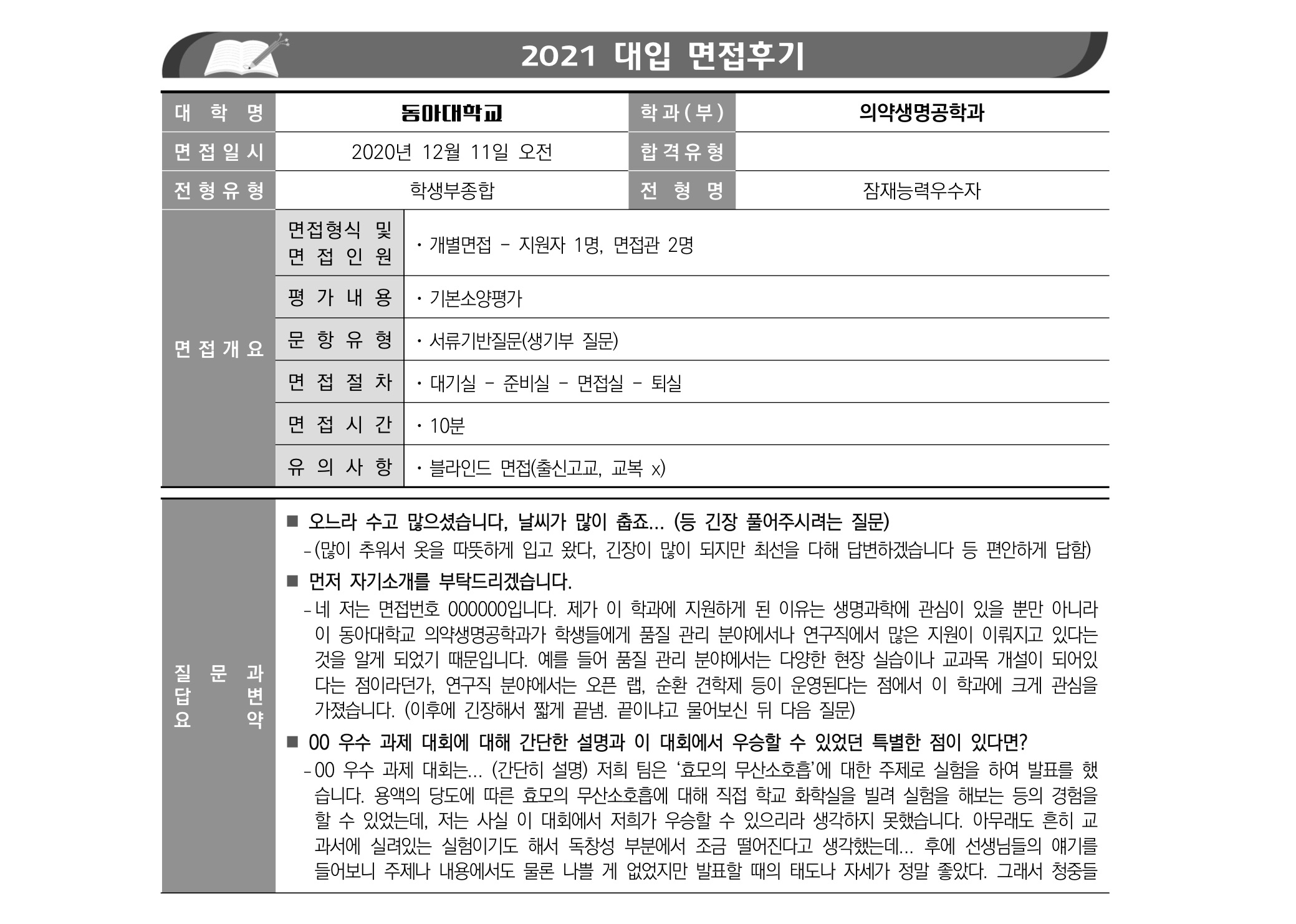2021학년도 동아대학교 면접 후기34 - 의약생명공학과