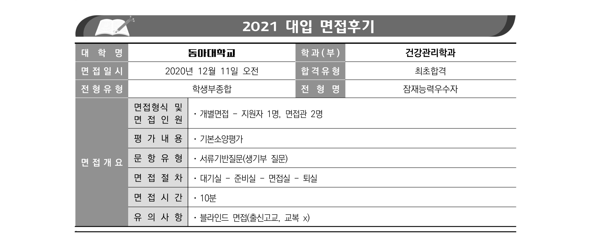 2021학년도 동아대학교 면접 후기1 - 건강관리학과