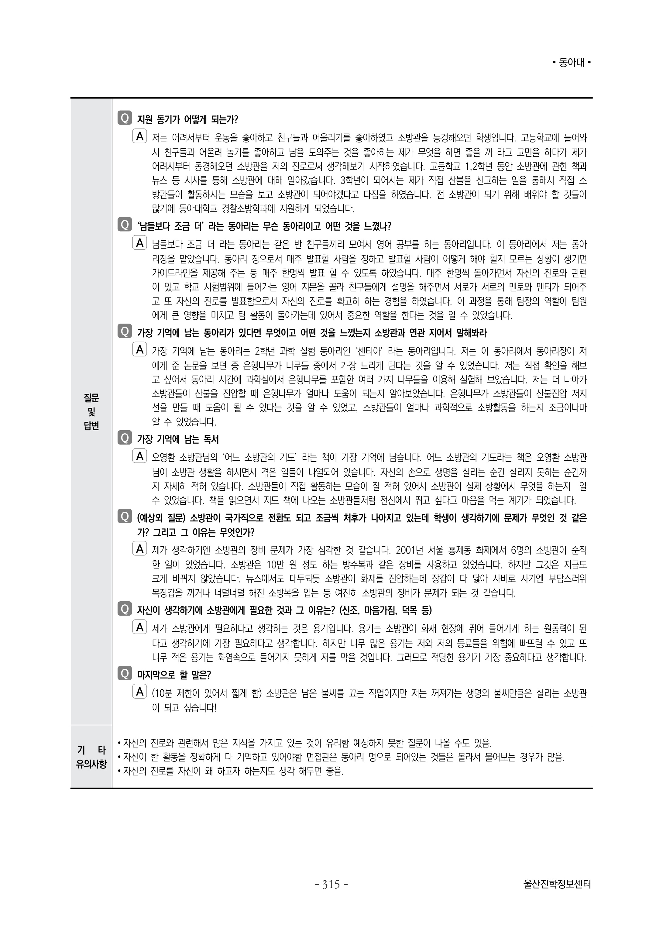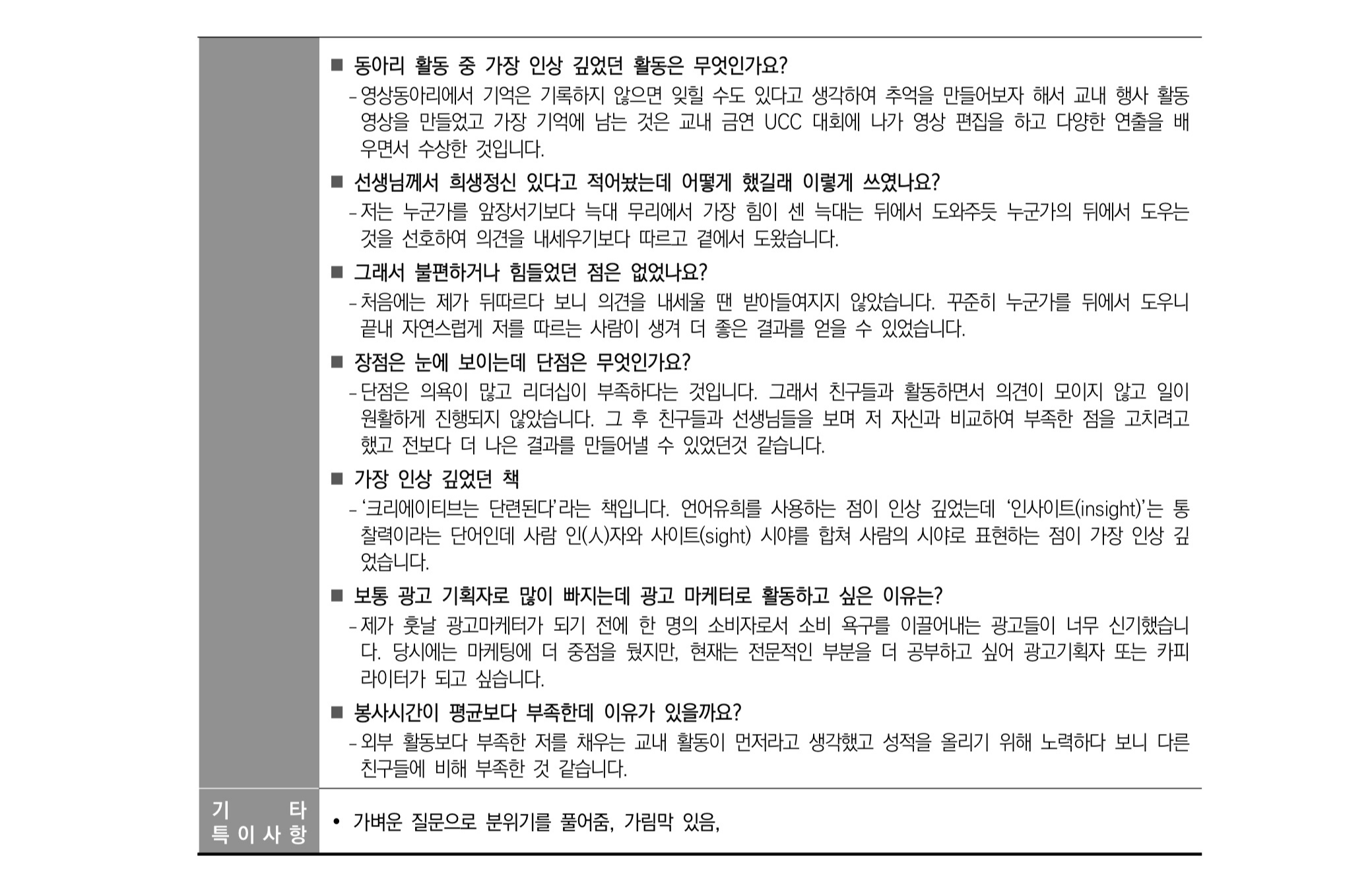 · OOO 동아리에 지원한 동기와 3년간 지속적으로 활동했던 내용을 동아리 내 본인의 역할 중심으로 말해 보세요.