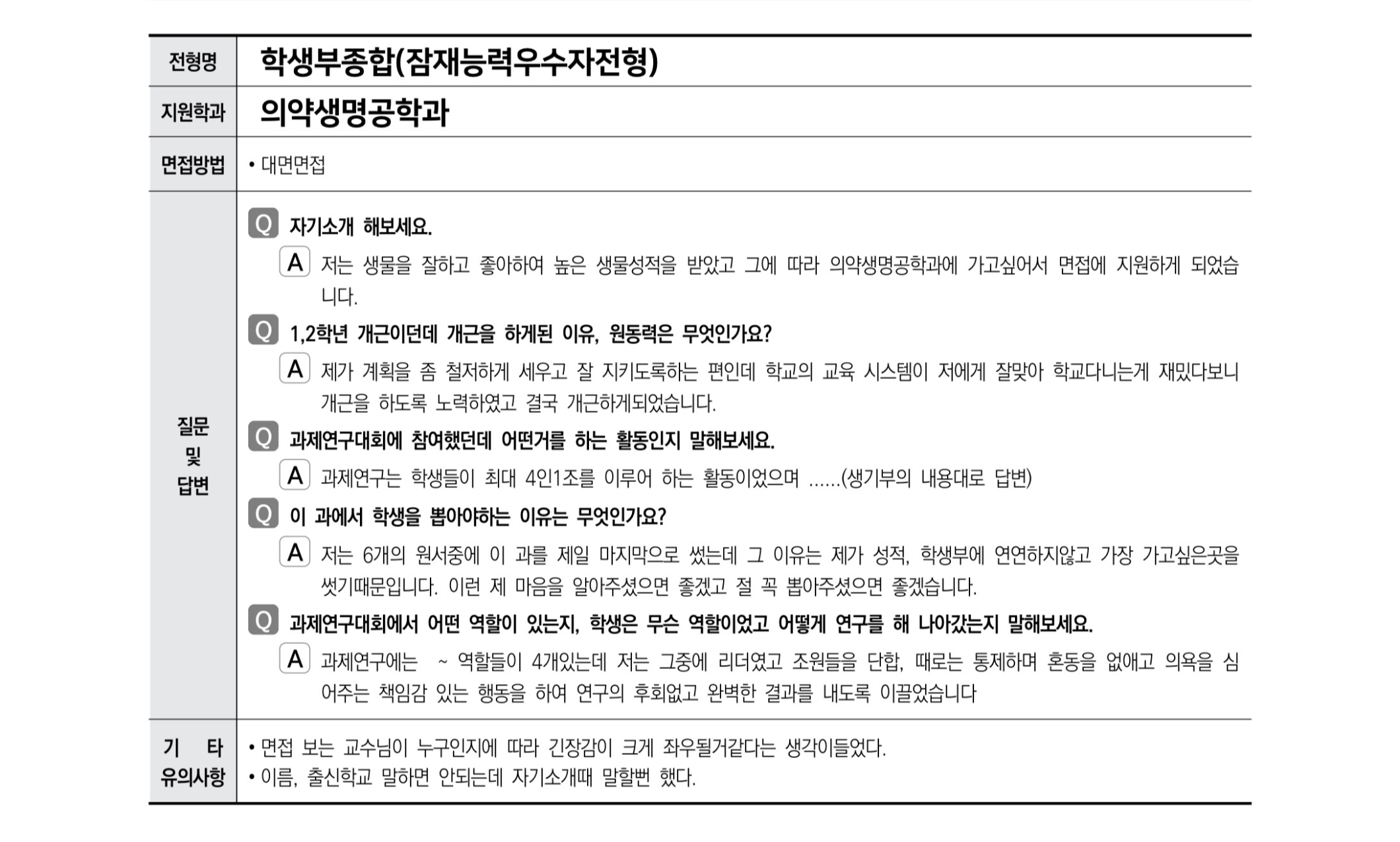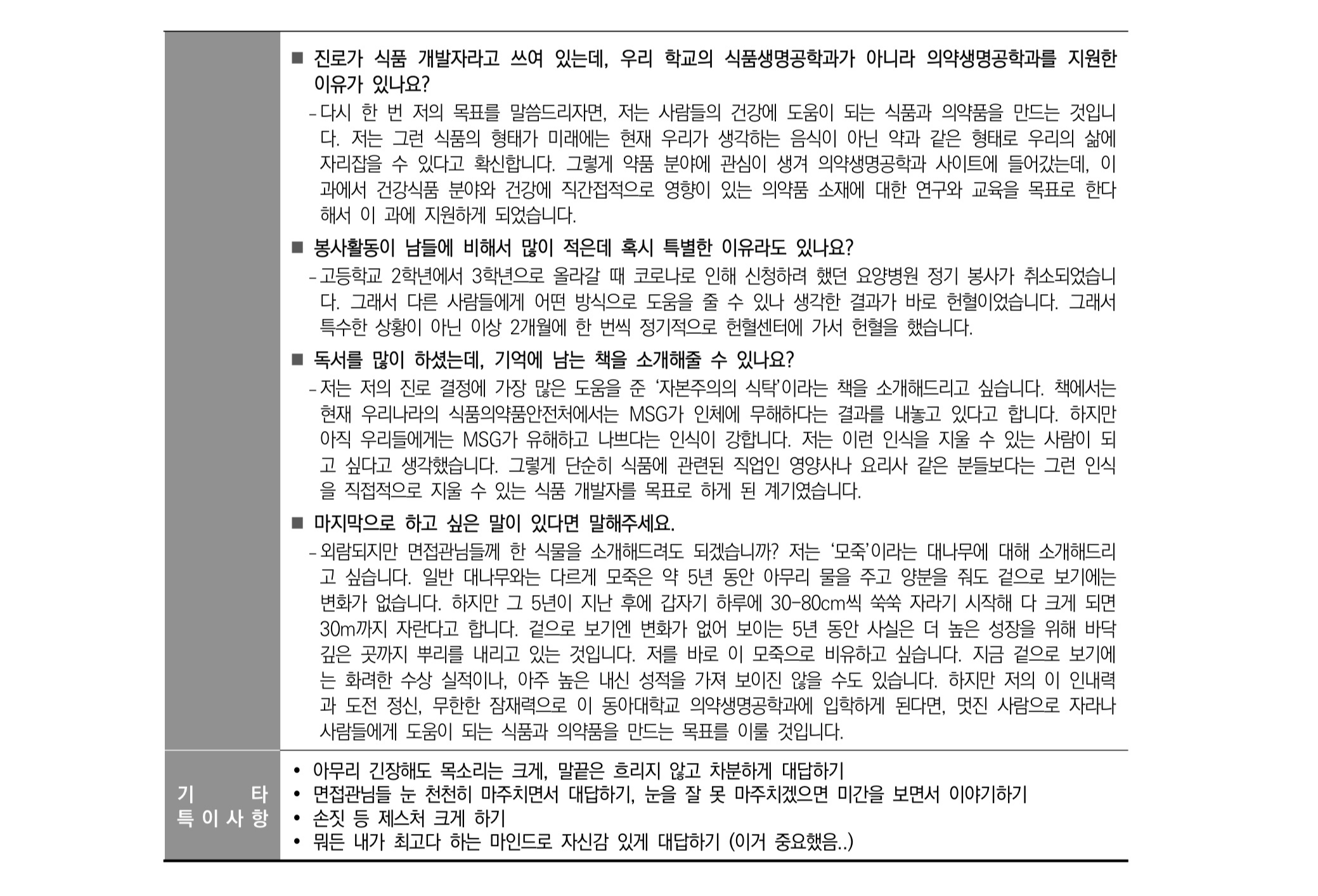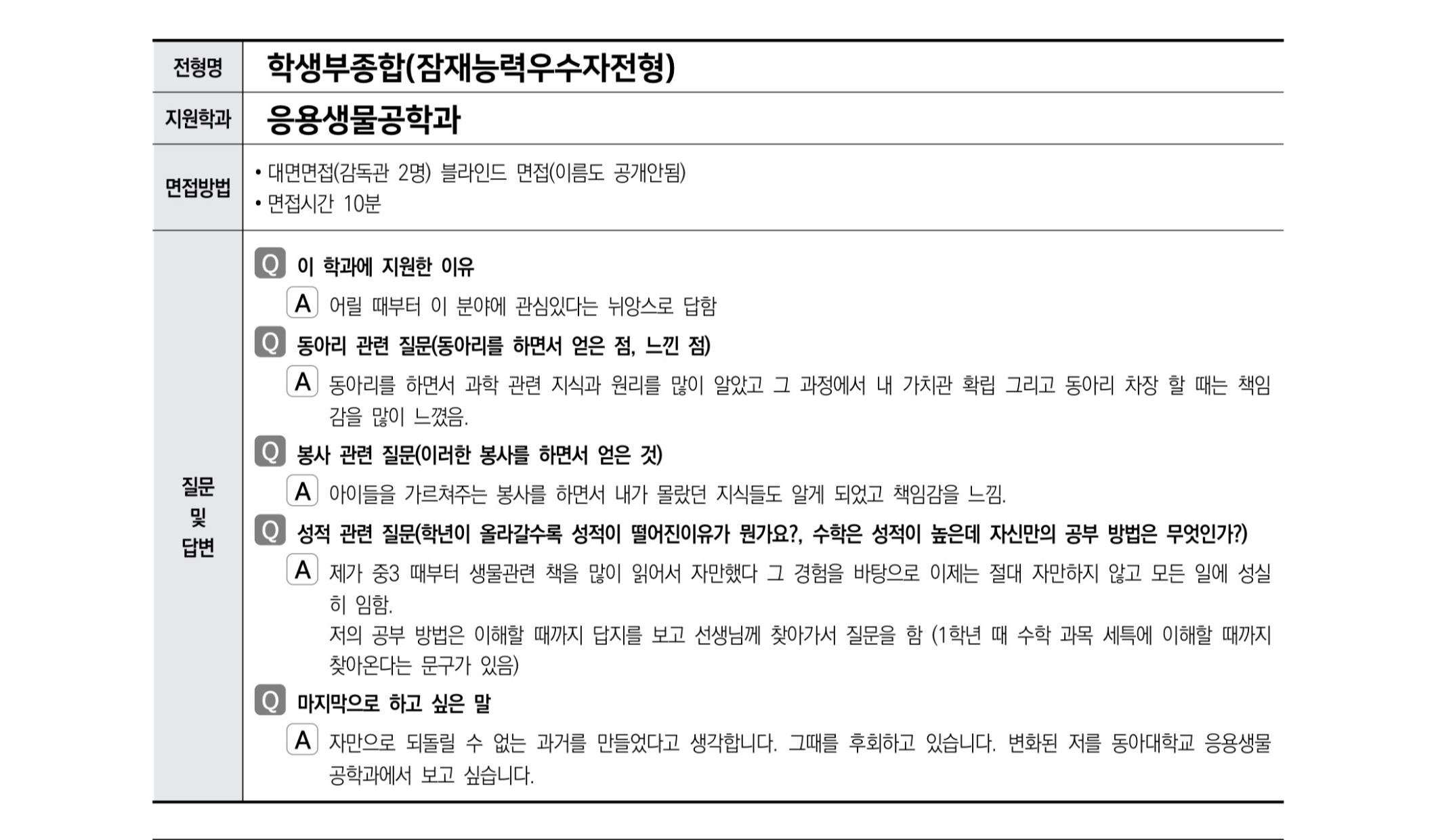 2021학년도 동아대학교 면접 후기31 - 응용생물공학과 2021학년도 동아대학교 면접 후기32 - 응용생물공학과